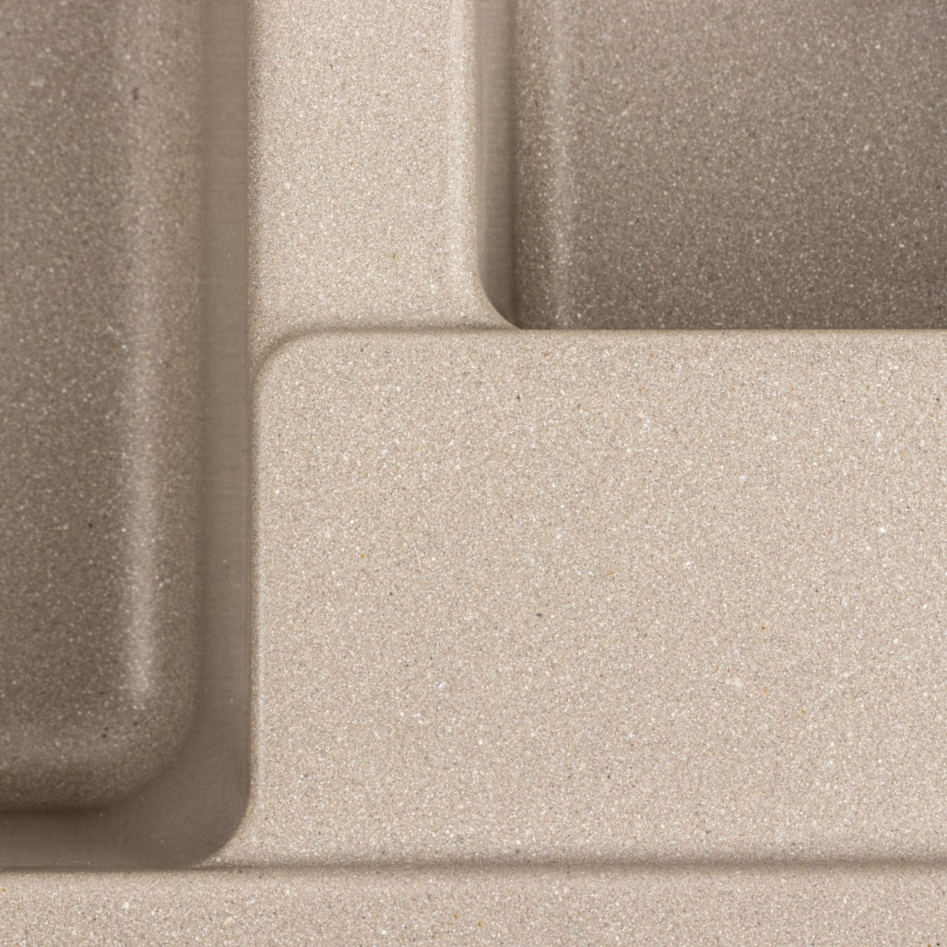 Мийка на 80% складається з кварцу та на 20% з надзвичайно твердої акрилової смоли, завдяки чому невибаглива у догляді, а також має великий запас міцності.
