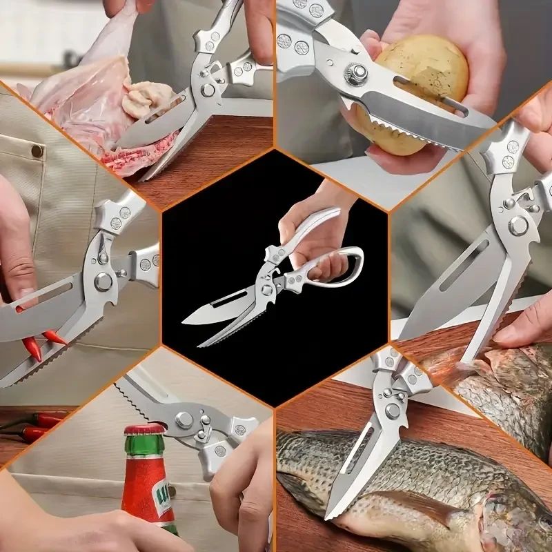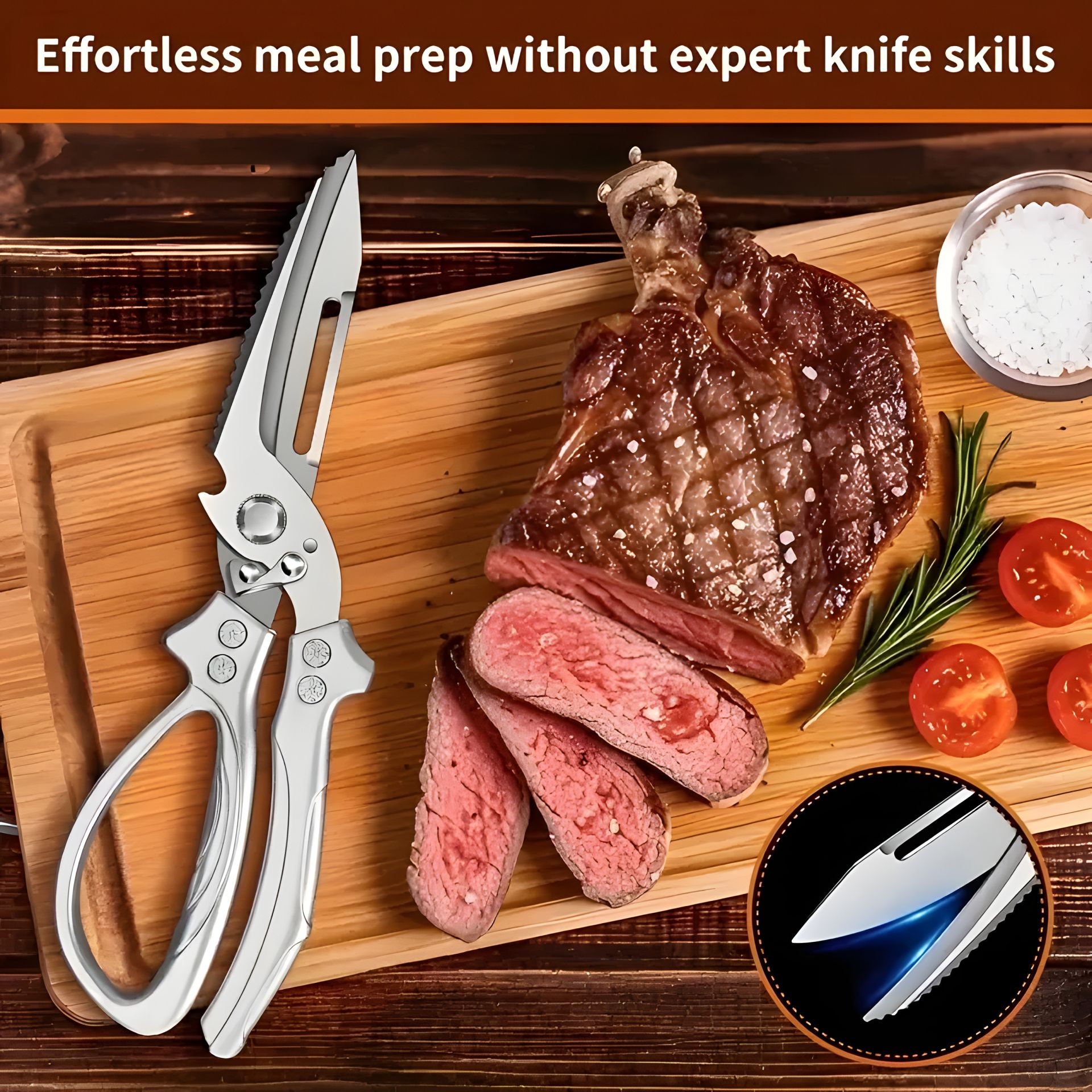 Надміцні кухонні ножиці з неіржавкої сталі — Багатофункціональні ножиці для птиці та барбекю з ергономічними ручками, гострі леза для курки, м'яса та багато іншого — ідеально підходять для дому, ресторану та використання на відкритому повітрі, безпечний для харчових продуктів дизайн, кухонні ножиці, ресторанне обладнання
