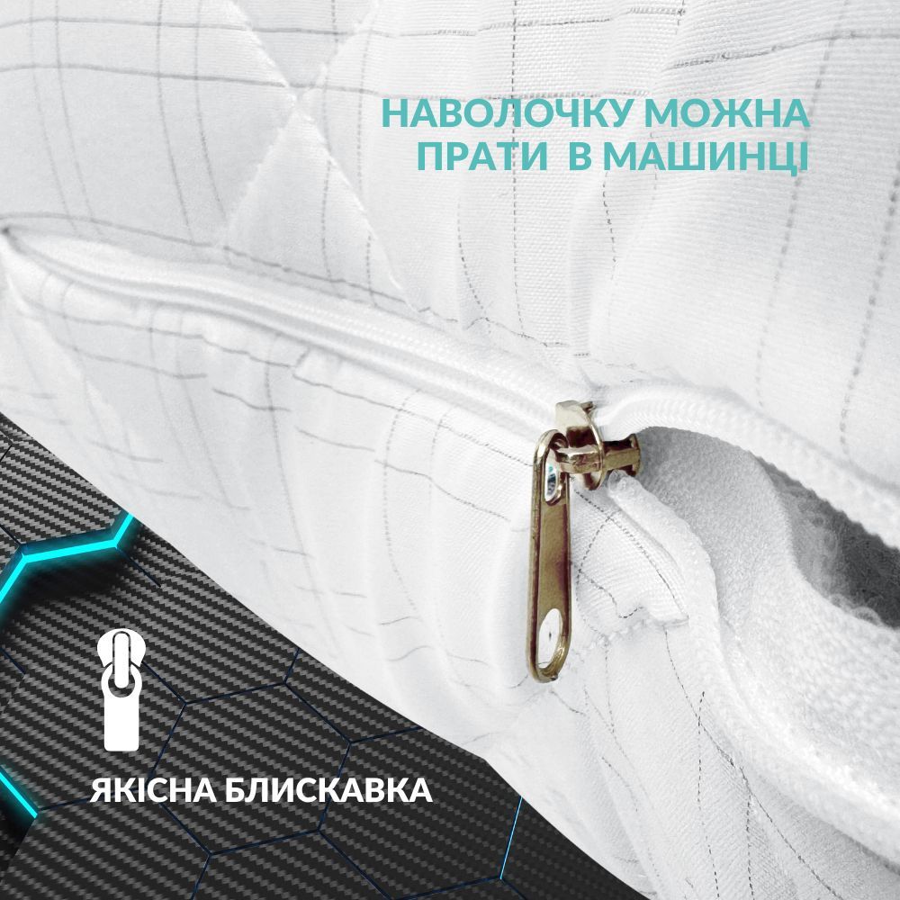 - Зручний догляд — наволочку можна прати у машинці, подушка не потребує спеціального догляду.