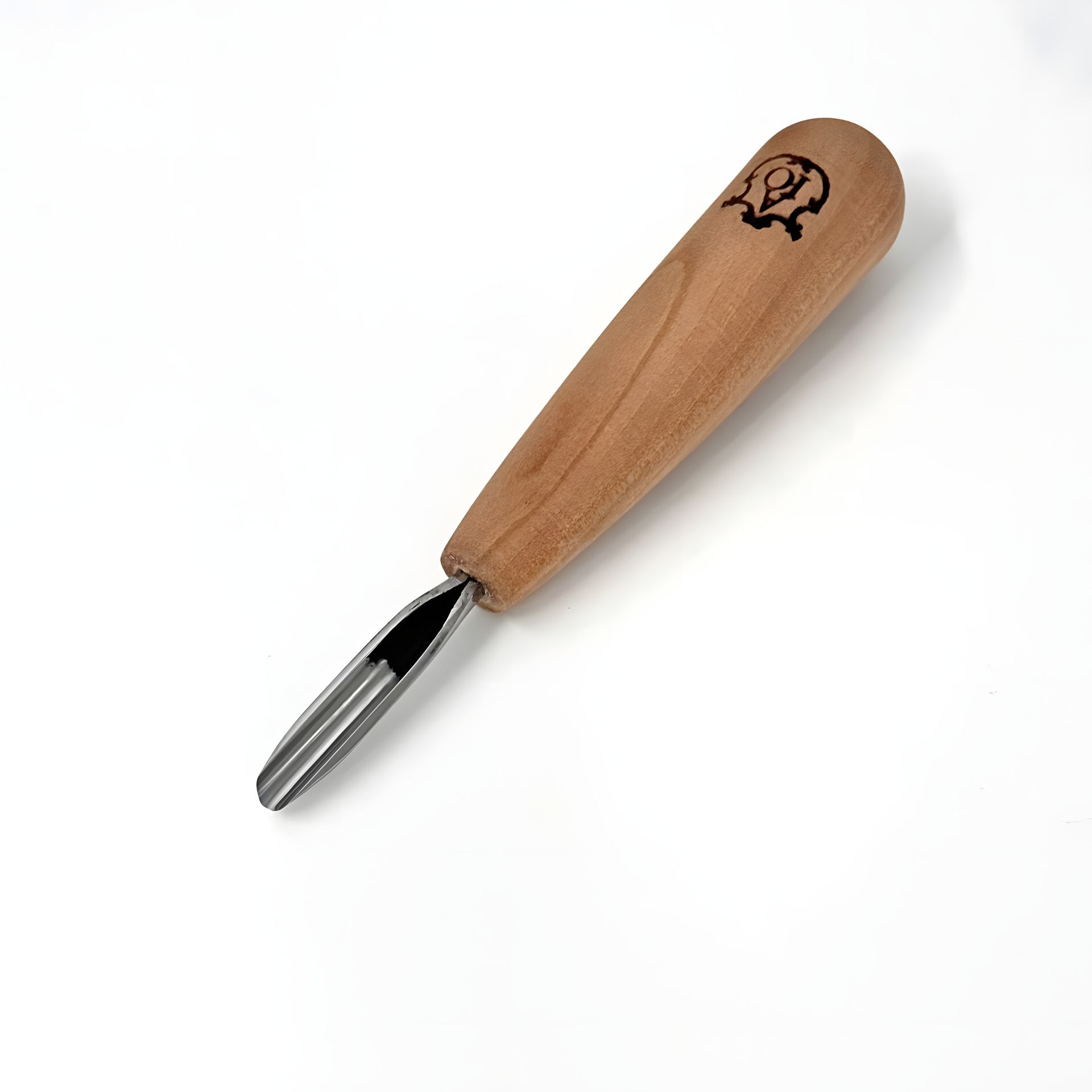 Серія PROFI виготовлена з високоякісної сталі У8 (твердість 58–62 HRC), що забезпечує тривалий термін служби інструменту без частого перезаточування. Ріжуча кромка шириною 6 мм з прогином 3 мм і металева частина 40 мм гарантують точність і контроль під час роботи. Рукоятка з груші з лляним покриттям забезпечує комфортний хват.