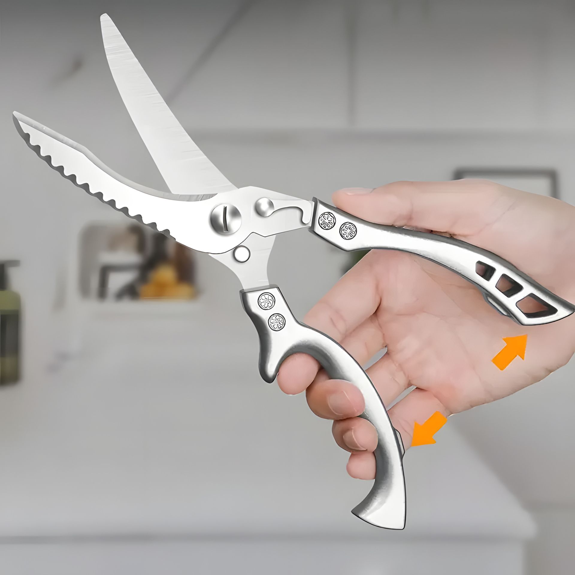 Надміцні кухонні ножиці з неіржавкої сталі — Багатофункціональні ножиці для птиці та барбекю з ергономічними ручками, гострі леза для курки, м'яса та багато іншого — ідеально підходять для дому, ресторану та використання на відкритому повітрі, безпечний для харчових продуктів дизайн, кухонні ножиці, ресторанне обладнання