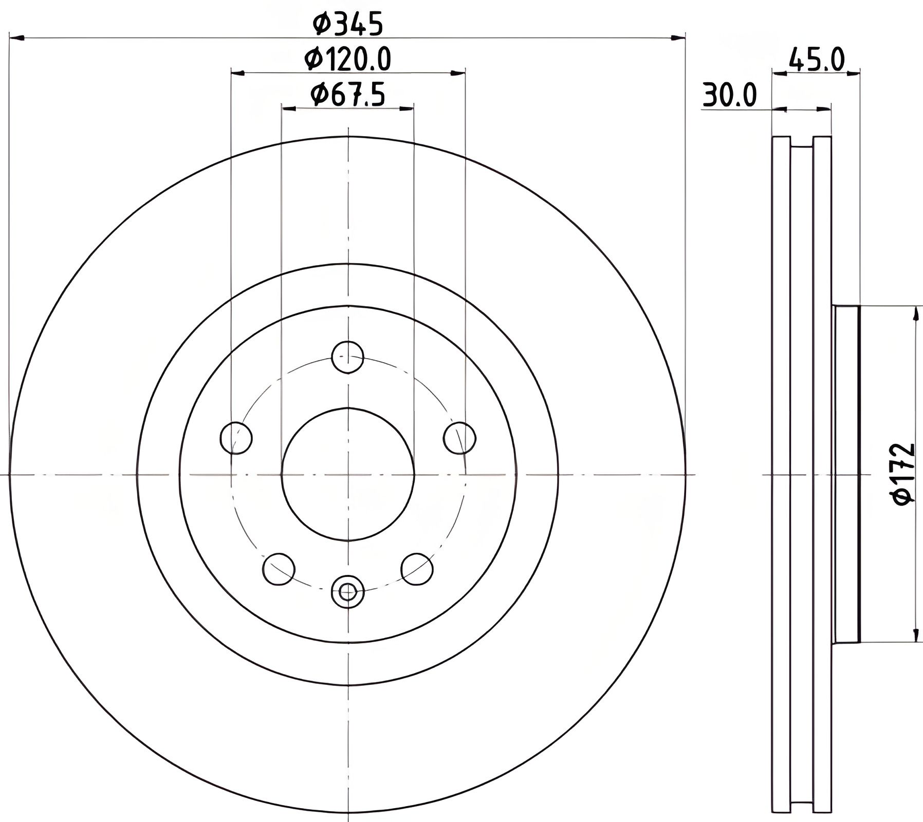 Тип гальмівного диска : вентильований Висота [мм] : 45 Фаска Ø [мм] : 120 Поверхня : Високовуглецева Поверхня : з покриттям Товщина гальмівного диска (мм) : 30 Мінімальна товщина [мм] : 27 Центруючий діаметр [мм] : 67,5 Зовнішній діаметр [мм] : 345 Вага [кг] : 11,2 Розташування/кількість отворів : 05/06 Додатковий артикул/додаткова інформація 2 : без опорної осі; без втулки Номер технічної інформації: 56145PRO_HC VAUXHALL 13598064 OPEL 13598064 OPEL INSIGNIA B Country Tourer (Z18) 2.0 GSi 4x4 (47) | універсал | Дизель Д 20 ДТР | 154 кВт | 210 к.с. | 01.2018-. OPEL INSIGNIA B Sports Tourer (Z18) 2.0 GSi 4x4 (35) | універсал | Дизель Д 20 ДТР | 154 кВт | 210 к.с. | 03.2017-. OPEL INSIGNIA B Grand Sport (Z18) 2.0 GSi 4x4 (68) | Хетчбек | |бензин Ф20ШТ | 169 кВт | 230 к.с. | 04.2020-. OPEL INSIGNIA B Grand Sport (Z18) 2.0 GSi 4x4 (68) | Хетчбек | Дизель Д 20 ДТР | 154 кВт | 210 к.с. | 03.2017-.