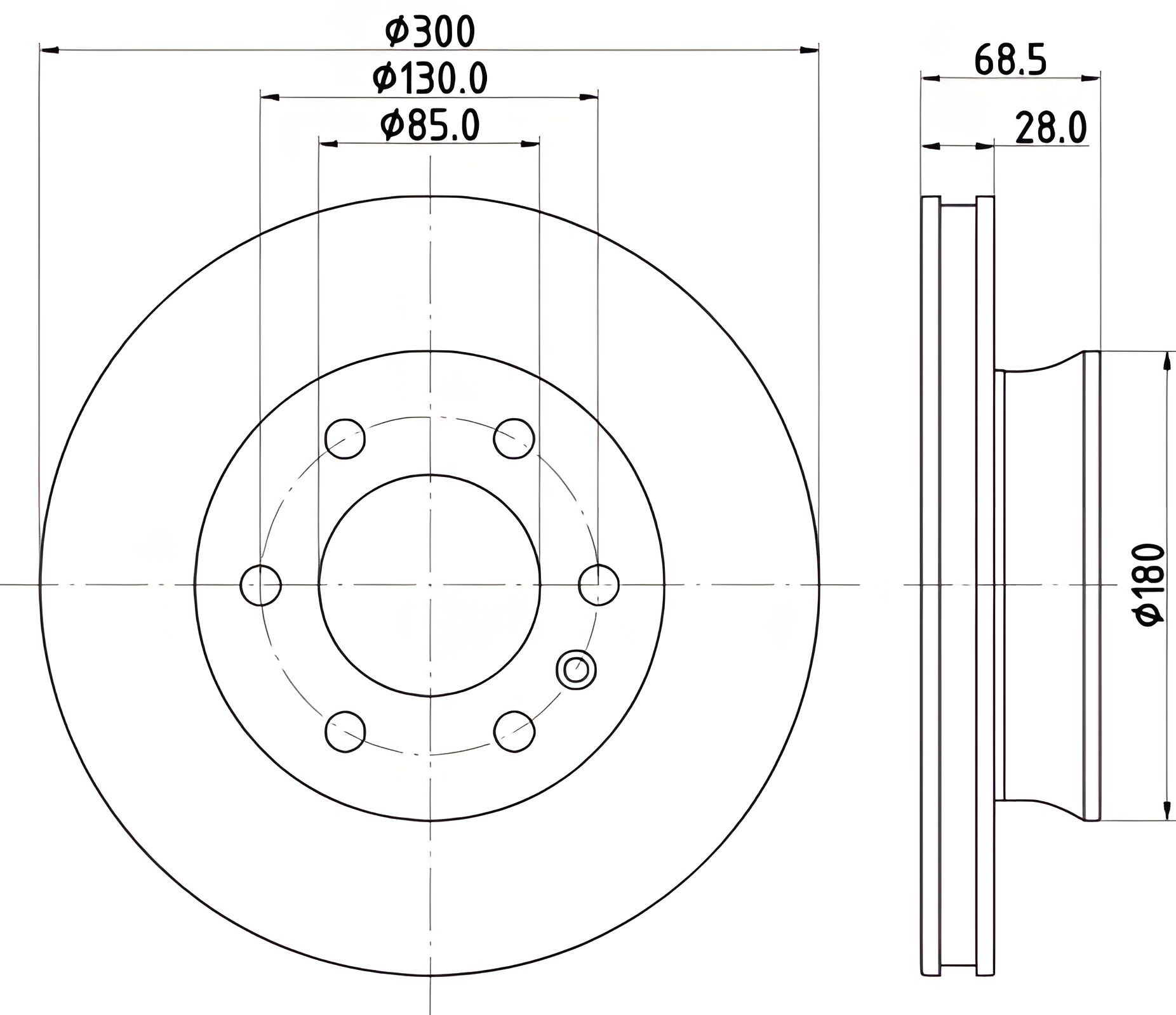 Тип гальмівного диска : вентильований Товщина гальмівного диска (мм) : 28 Мінімальна товщина [мм] : 25 Вага [кг] : 8,6 Висота [мм] : 68,5 Ø фаски [мм] : 130 Центруючий діаметр [мм] : 85 Поверхня : з покриттям Зовнішній діаметр [мм] : 300 Розташування/кількість отворів: 06/07 Додатково артикул/додаткова інформація 2: без колісної осі; без втулки Номер технічної інформації: 56012PRO MERCEDES BENZ 9104210000 910421000007 9104210100 A9104210000 A910421000007 A9104210100 MERCEDES-BENZ SPRINTER 4-t Tourer Bus (B907) 2500 4-matic (907.743) | Автобус | Дизель ОМ 654.920 | 155 кВт | 211 к.с. | 01.2023-. MERCEDES-BENZ SPRINTER 4-t Tourer Bus (B907) 415 CDI (907.741, 907.743, 907.745) | Автобус | Дизель ОМ 651.958 | 110 кВт | 150 к.с. | 10.2021-. MERCEDES-BENZ SPRINTER 4-t Tourer Bus (B907) 1500 (907.743) | Автобус | бензин М 274.920 | 140 кВт | 190 к.с. | 01.2019-. MERCEDES-BENZ SPRINTER 4-t Tourer Bus (B907) 2500 (907.743) | Автобус | бензин М 274.920 | 140 кВт | 190 к.с. | 01.2019-. MERCEDES-BENZ SPR