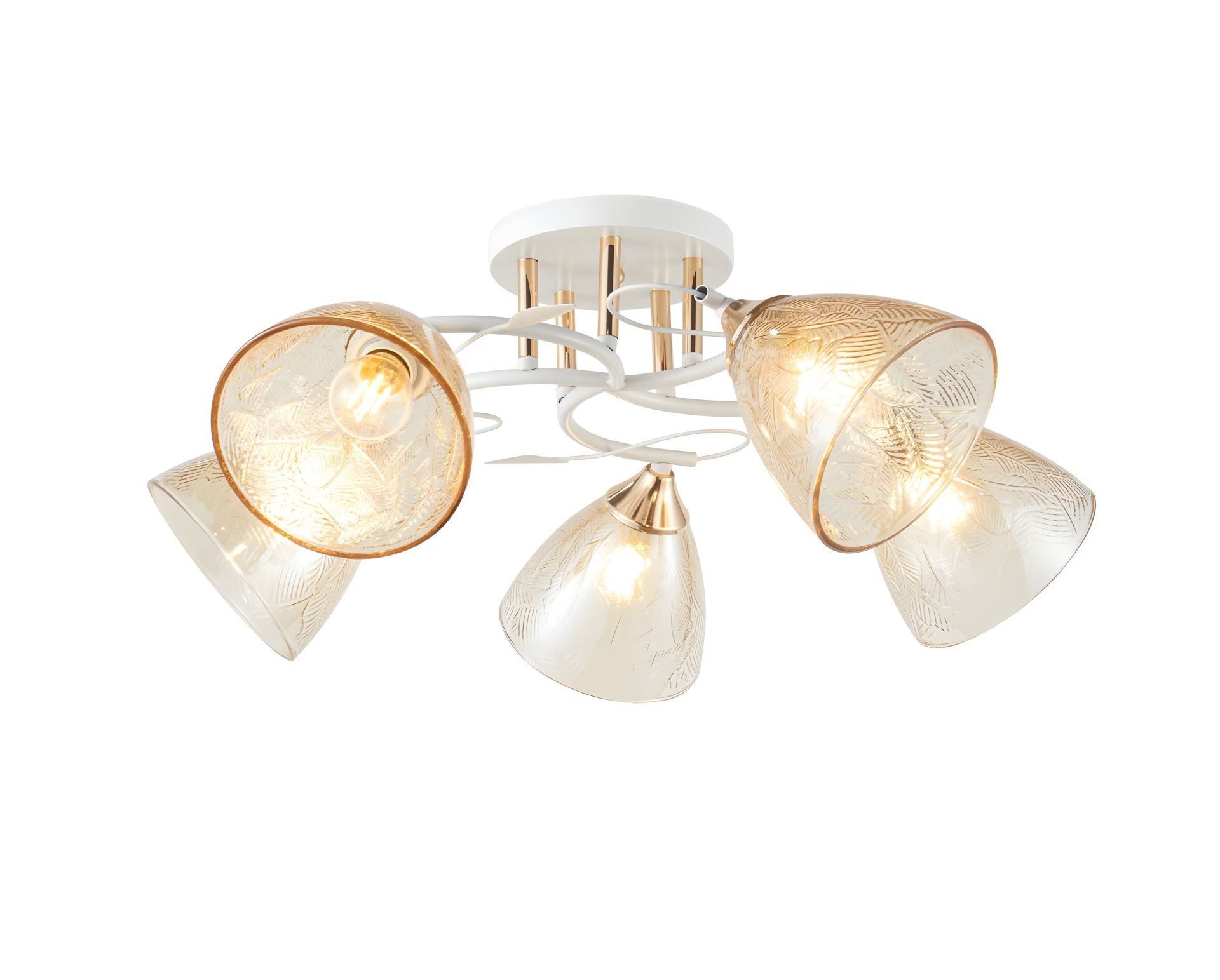 Люстра V 6364-5 WH+FG— стильне й елегантне рішення для сучасного інтер’єру. Корпус виконано з металу у білому кольорі (WH), що створює чистий і свіжий вигляд, доповнений декоративними вставками в золоті, які додають тепла і вишуканості. Світильник має п'ять джерел світла з цоколем E27, що дозволяє обрати лампи за вашим уподобанням й адаптувати освітлення під атмосферу приміщення.