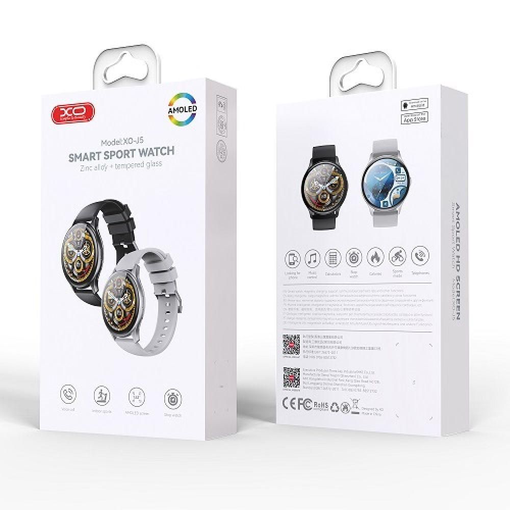Смартгодинник XO J5 стане справжнім помічником упродовж усього дня: спростять взаємодію зі смартфоном, зроблять заняття спортом ефективнішими та допоможуть відстежувати важливі показники організму. Ґаджет привертає увагу стильним дизайном, має невеликі розміри та вагу. За допомогою силіконового ремінця із застібкою-пряжкою він зручно та надійно фіксується на зап'ястку будь-якої товщини та має стильний вигляд на ньому. Його корпус виготовлений у класичній круглій формі, виготовлений із надзвичайно міцного цинкового сплаву, а екран — з ударостійкого загартованого скла. Міцні матеріали, у поєднанні з надійними електронними компонентами, а також захистом від води та пилу за стандартом IP68 гарантують тривалий термін експлуатації годинника та його працездатність у найекстремальніших умовах. Їхній сенсорний AMOLED дисплей вражає якістю зображення з глибоким чорним та іншими насиченими, контрастними кольорами, виділяється широким кутом огляду та підвищеною енергоефективністю. Роздільна здатність дисплея становить 466х466 пікселів за діагоналі 1.43". Автономність годинника забезпечує акумулятор ємністю 260 mAh, а бездротове з'єднання зі смартфонами під керуванням iOS і Android з підтримкою здійснення дзвінків — сучасним модулем Bluetooth. Інтуїтивно зрозумілий інтерфейс допоможе легко керувати їх функціями, серед яких виділяються такі: прогноз погоди, вимірювання сатурації та артеріального тиску, підрахунок спалених калорій, голосові виклики, набір спортивних режимів, калькулятор, керування відтворенням музики, пошук смартфона, таймер, будильник, моніторинг сну. Крім ремінця, до комплекту до годинника входять інструкція та кабель для заряджання.