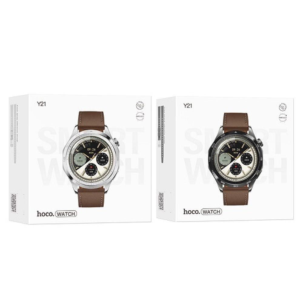 Смартгодинник Hoco Y21 AMOLED — це компактний, багатофункціональний пристрій, який поєднує в собі стильний дизайн і широкий спектр корисних функцій. Вони створені для тих, хто веде активний спосіб життя й цінує сучасні технології. Особливості та переваги смарт-годинника Hoco Y21: • Стильний дизайн із вишуканими деталями та класичним круглим екраном. • Компактні розміри та невелика вага (всього 57 грамів). • Міцний корпус: ударостійке скло, IML нижня панель і середня рамка із цинкового сплаву. • Захист від пилу та води в повній відповідності до стандарту IP67. • Яскравий, контрастний AMOLED дисплей із діагоналлю 1.43" і роздільною здатністю 466*466 пікселів. • Чутливий сенсорний екран і практичні елементи керування. • Модуль Bluetooth BLE V5.0 для синхронізації з пристроями під керуванням iOS і Android. • Датчик серцевого ритму Vicki Micro LC11S, вібромотор Flat 0820 і крокомір Silan Micro SC7A20E. • Вбудований кобальтовий акумулятор ємністю 230mAh — 3-7 днів роботи у звичайному режимі. • Висока продуктивність: процесор Jerry JL 7012A6, 640KB оперативної пам'яті та 128MB постійної пам'яті. • Інтуїтивно зрозумілий інтерфейс, який підтримує роботу 22 мовами, зокрема українською. • Комплектуються інструкцією, USB-кабелем для бездротового заряджання та двома ремінцями із силікону та штучної шкіри. Основні функції смарт-годинника Hoco Y21: здійснення дзвінків через Bluetooth, повідомлення про дзвінки та повідомлення, запис дзвінків, 120+ спортивних режимів, моніторинг сну, вимірювання серцевого ритму, вимірювання сатурації, тренування дихання, настроювання яскравості, керування відтворенням музики, прогноз погоди, пошук смартфона. Стильний дизайн смарт-годинника Hoco Y21 лаконічно доповнить будь-який образ, а їхня широка функціональність спростить взаємодію зі смартфоном, підвищить ефективність тренувань і допоможе контролювати важливі показники організму впродовж усього дня.