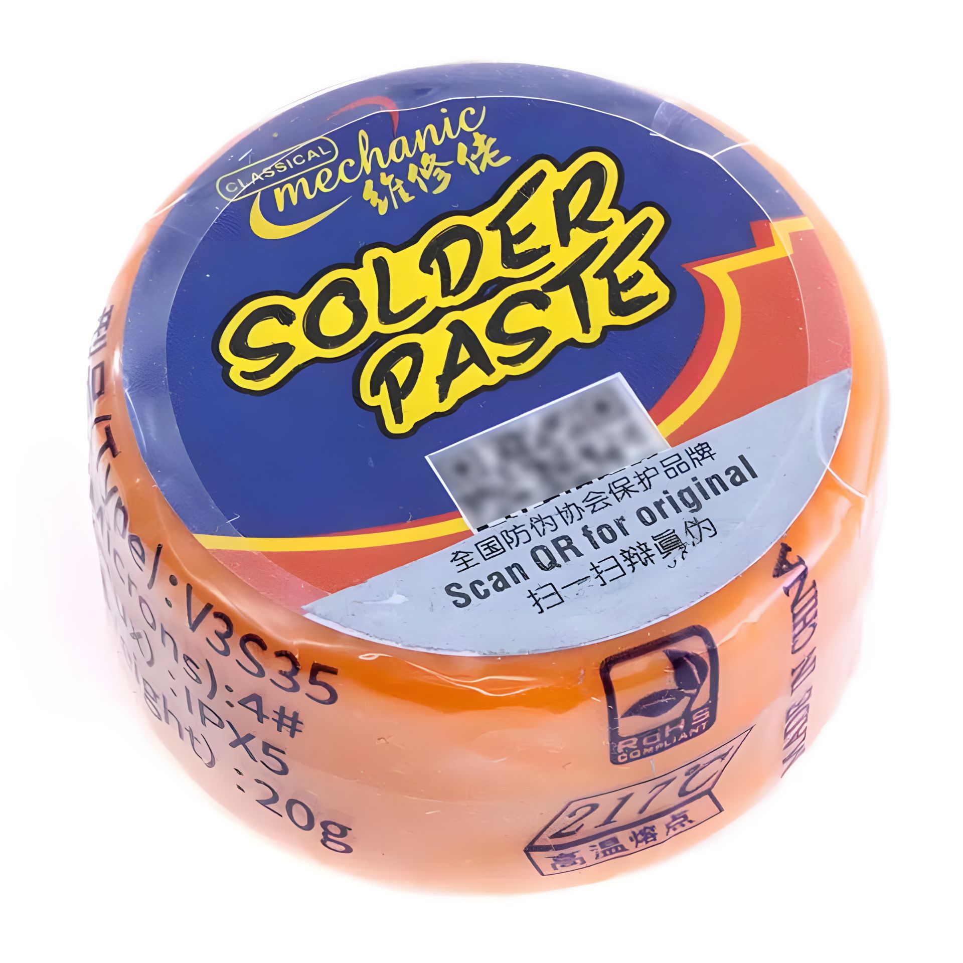 Безсвинцева паяльна паста BGA Mechanic V3S35 Sn 99%, Ag 0.3%, Cu 0.7%, IPX5, 217°C, 20г