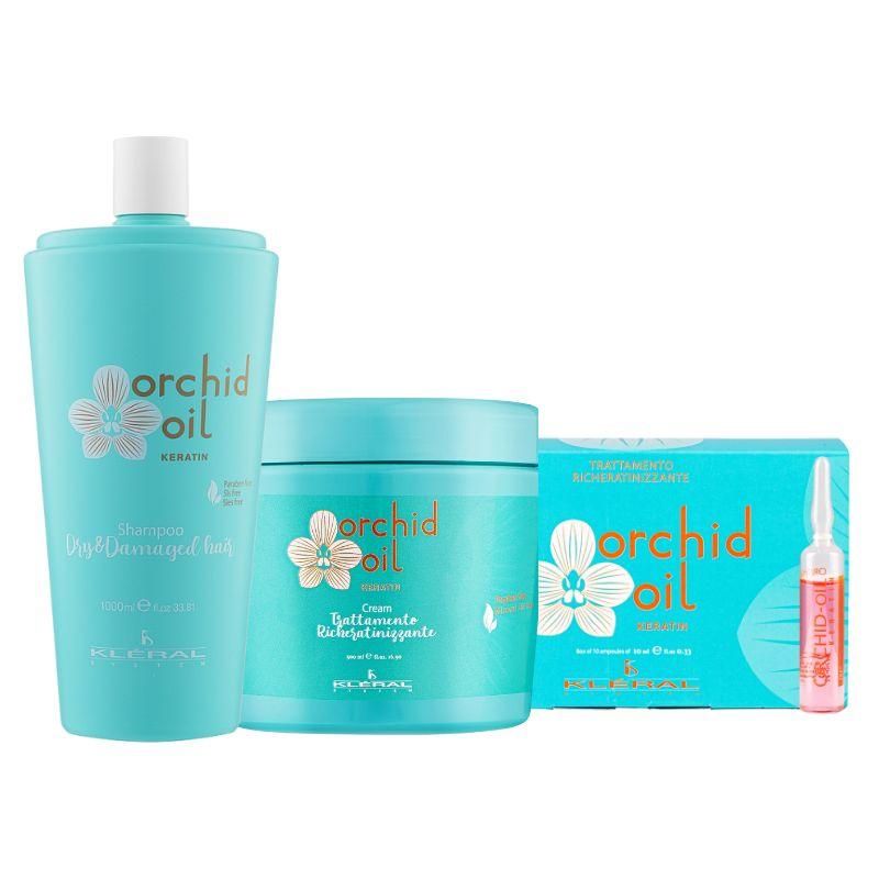Набір KLERAL System TRIO Orchid шампунь, маска й ампули з олією орхідеї для сухого волосся 1000/500/100 мл