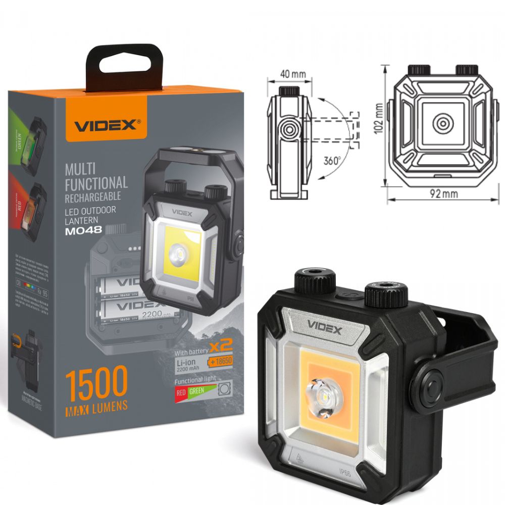 Портативний Power Bank ліхтар VIDEX VLF-M048 1500 Лм, IP66, COB, магніт, регулювання кольору (2700–6500K), CRI >95