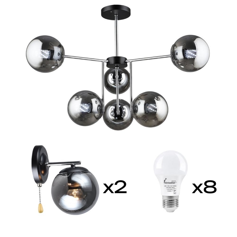 Цей елегантний комплект освітлення від VALESO — ідеальне поєднання сучасного дизайну та класичної витонченості. Набір включає люстру K2307/6 та два настінні бра K2307/1W, які разом створюють гармонійну систему освітлення для вашого інтер'єру. Контраст глибокого чорного кольору з блискучими хромовими акцентами та плафонами з димчастого скла надають комплекту особливого шарму, що чудово доповнить сучасні інтер'єри, лофт-простори або приміщення в стилі мінімалізм.
