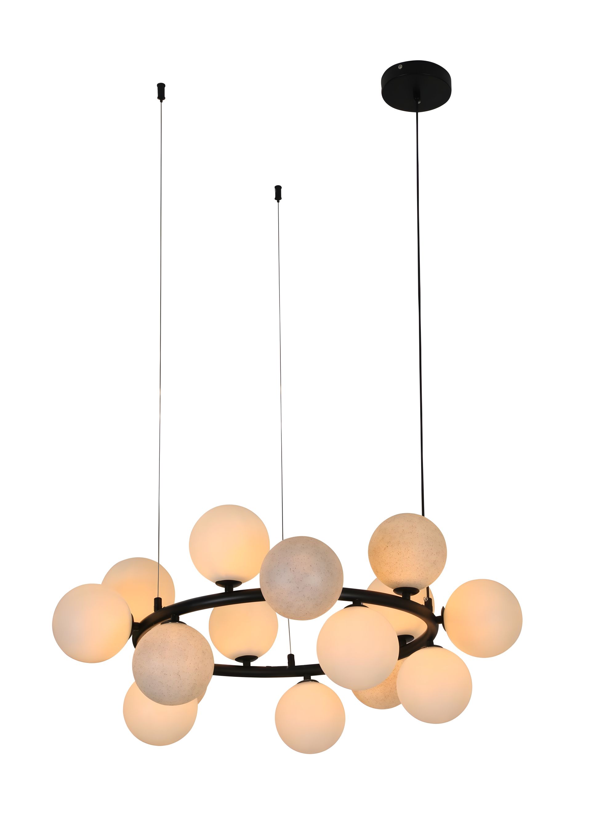 Масштабний дизайн та елегантна легкість! Підвісна люстра VALESO 77071/750 в глибокому чорному кольорі стане центральним акцентом вашого інтер'єру, будь то простора вітальня, їдальня або студія з високими стелями. Її вражаюча конструкція діаметром Φ750 мм має 15 плафонів з поширеним патроном G9, що дозволяє створити яскраве, рівномірне та по-справжньому виразне освітлення.