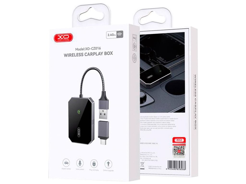Автомобільний Carplay XO CZ016 — це високотехнологічний аксесуар, створений для повноцінного використання функції Apple Carplay. Він надасть можливість без жодних дротів під'єднати iPhone 6 і новіші до сумісних автомобільних систем із дисплеєм і підтримкою під'єднання сторонніх пристроїв через інтерфейси USB-A або Type-C.