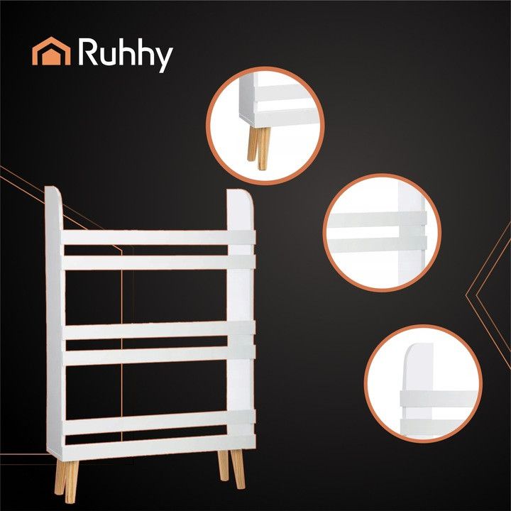 - виготовлений з міцної плити МДФ, стелаж RUHHY легко чистити та він стійкий до щоденного використання – достатньо протерти, і він знову виглядає як новий