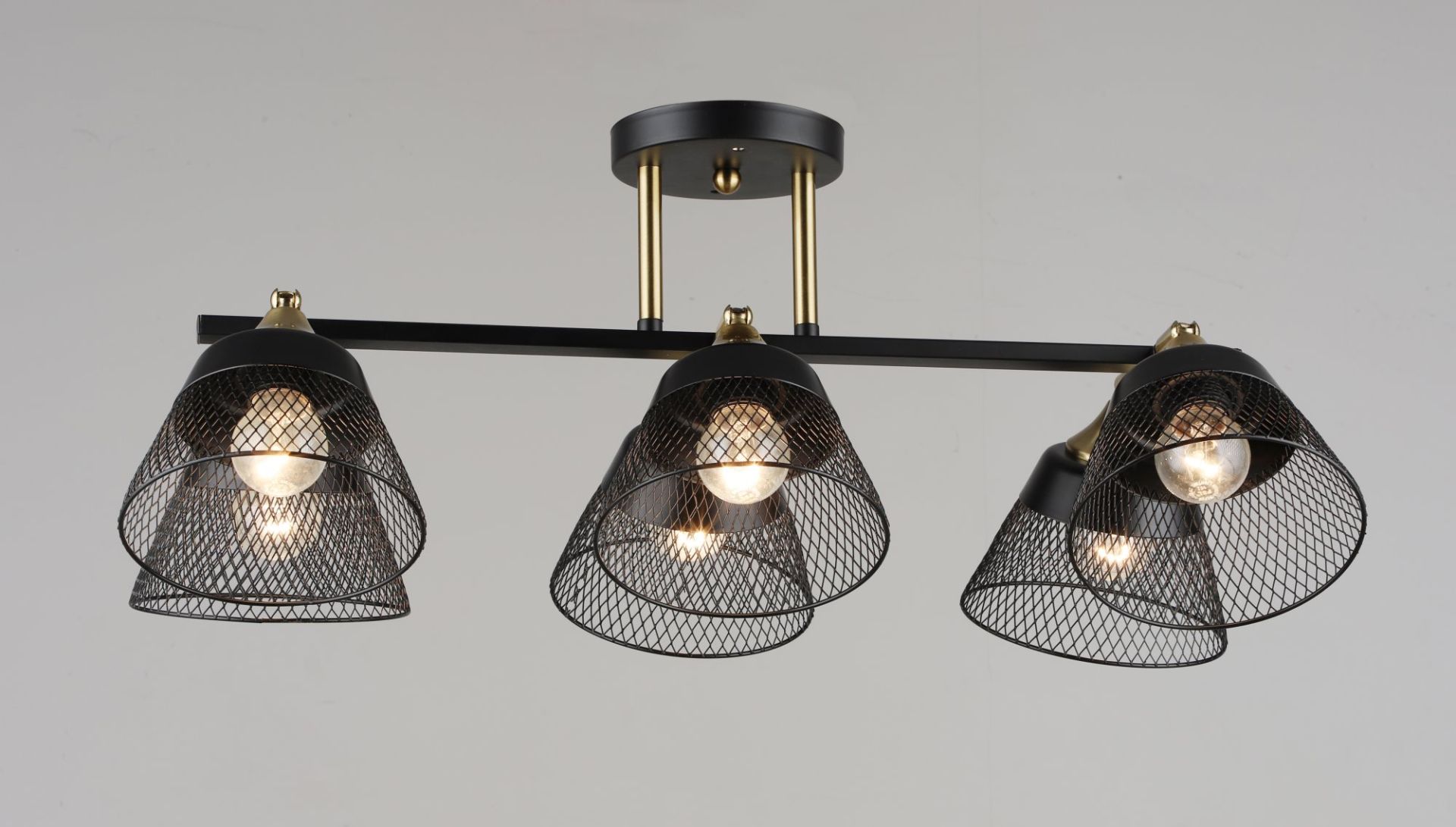 Люстра має міцний каркас з металу у стильному поєднанні матового чорного кольору та теплих акцентів міді. Шість відкритих патронів E27 дозволяють використовувати декоративні лампи великих розмірів, підкреслюючи її індустріальну естетику, та забезпечуючи яскраве загальне освітлення.