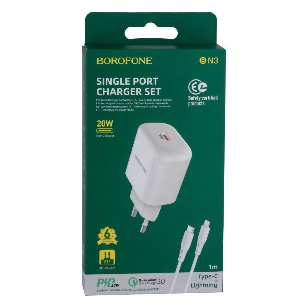 Мережевий зарядний пристрій Borofone BN3 Premium PD 20 W Type-C to Lightning QC3.0 Колір Білий