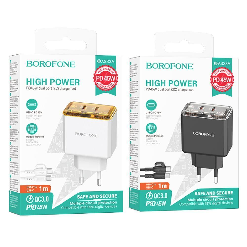 Мережевий зарядний пристрій Borofone BAS33A 2USB-C PD/QC45W Type-C to Type-C Колір Білий
