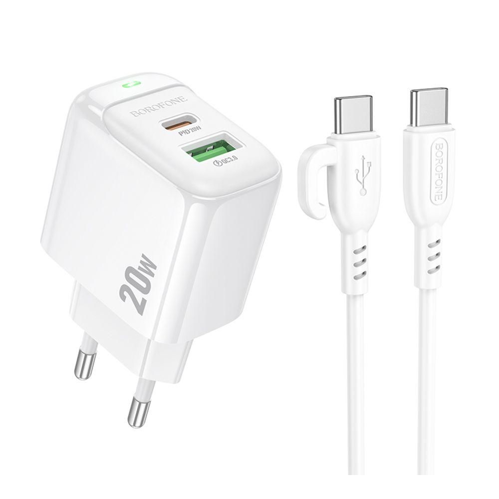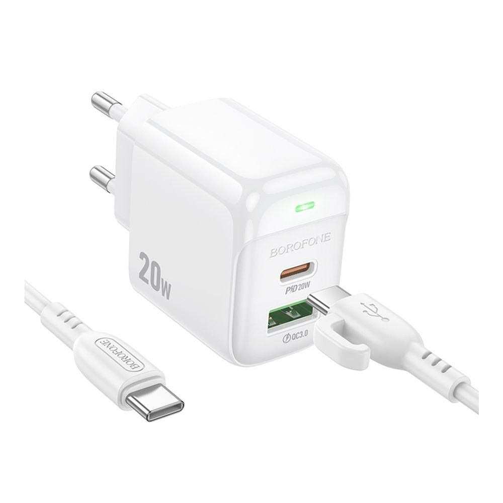 Мережевий зарядний пристрій Borofone BAS44A 1USB-C/1USB PD/QC 20W+Type-C to Type-C Колір Білий