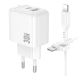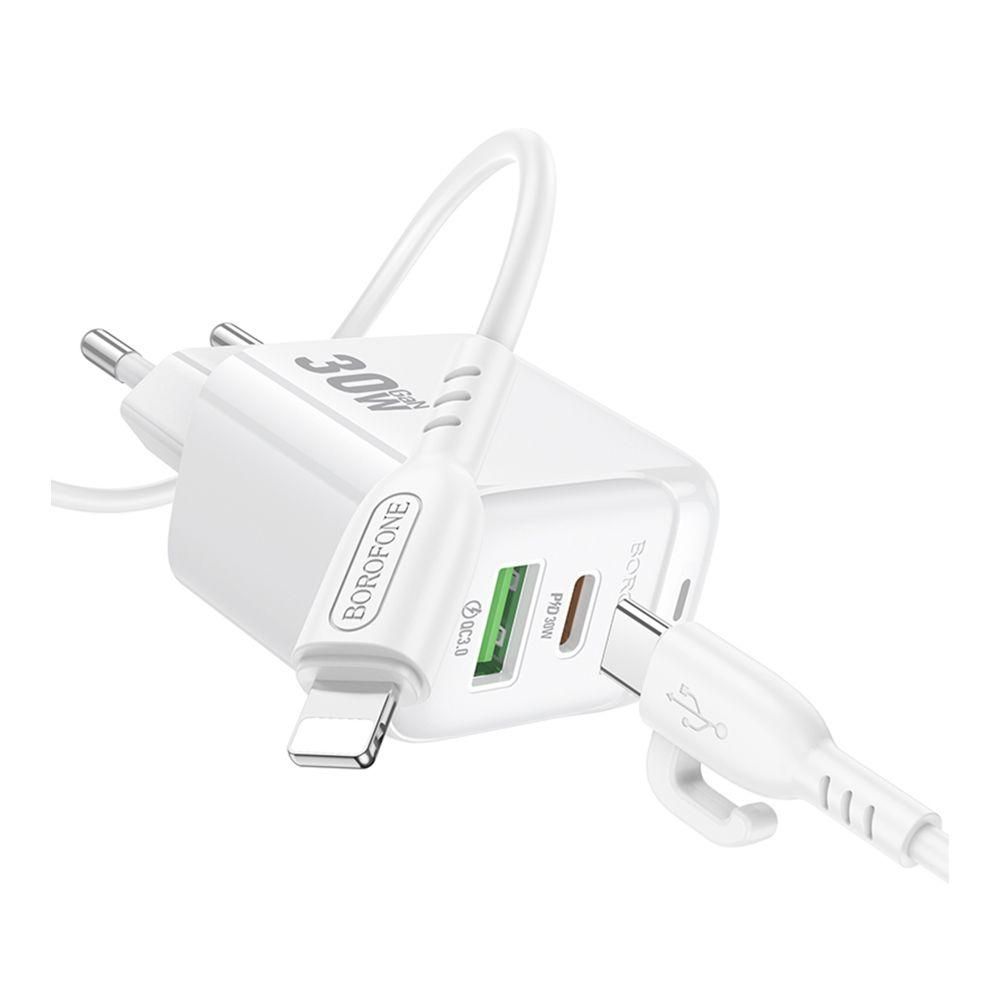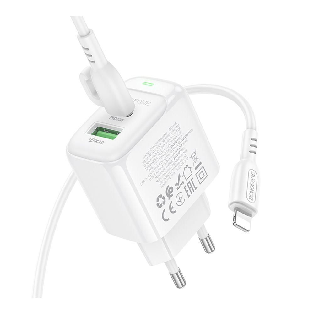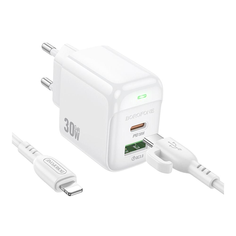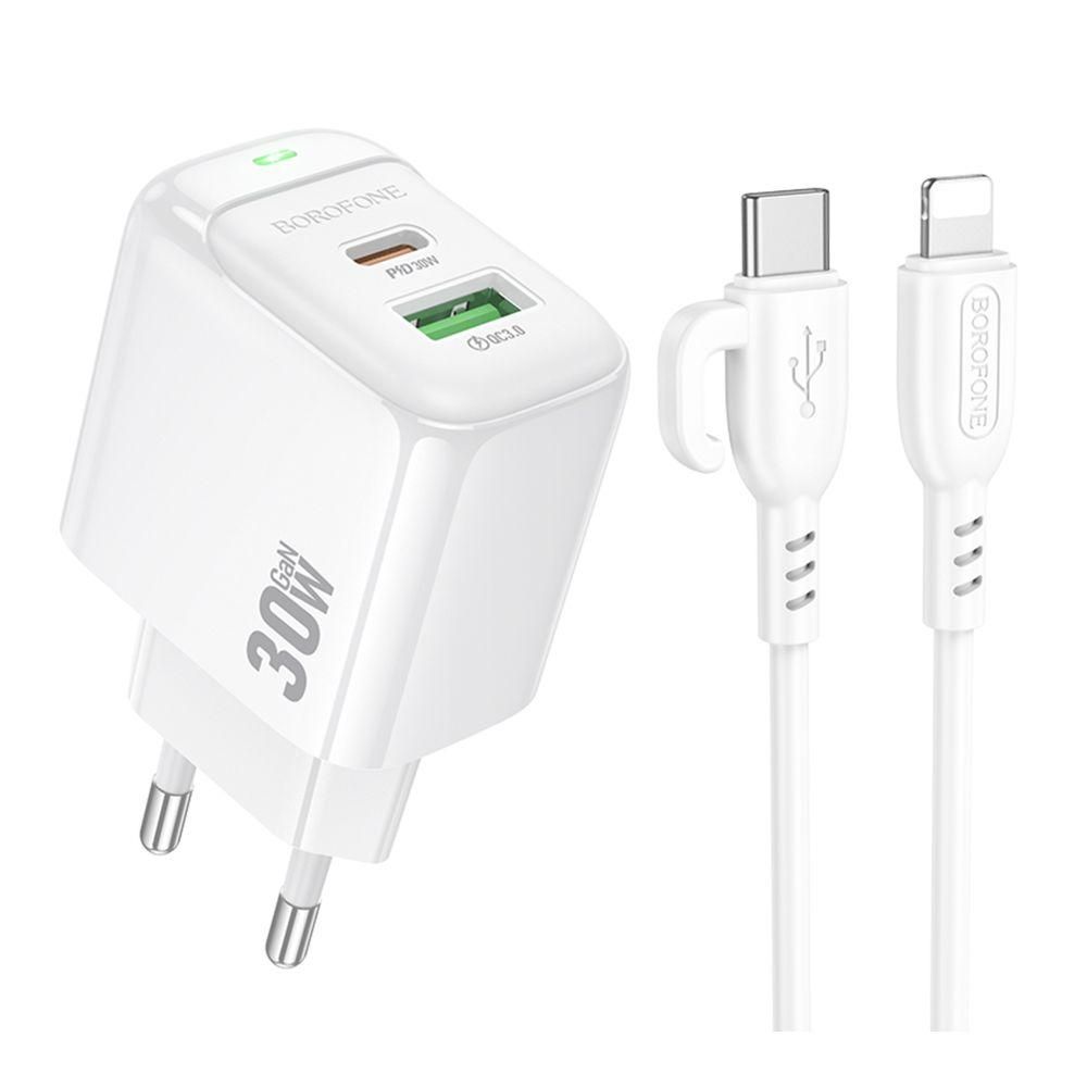 Мережевий зарядний пристрій Borofone BAS45A 1USB-C/1USB PD/QC 30 W + Type-C to Lightning Колір Білий