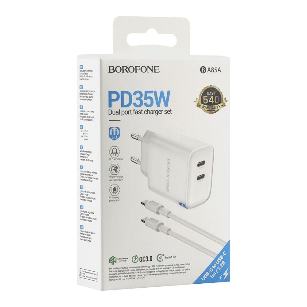 Мережевий зарядний пристрій Borofone BA85A 2USB-C PD/QC 35 W + Type-C to Type-C Колір Білий