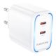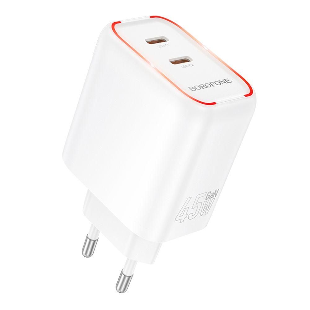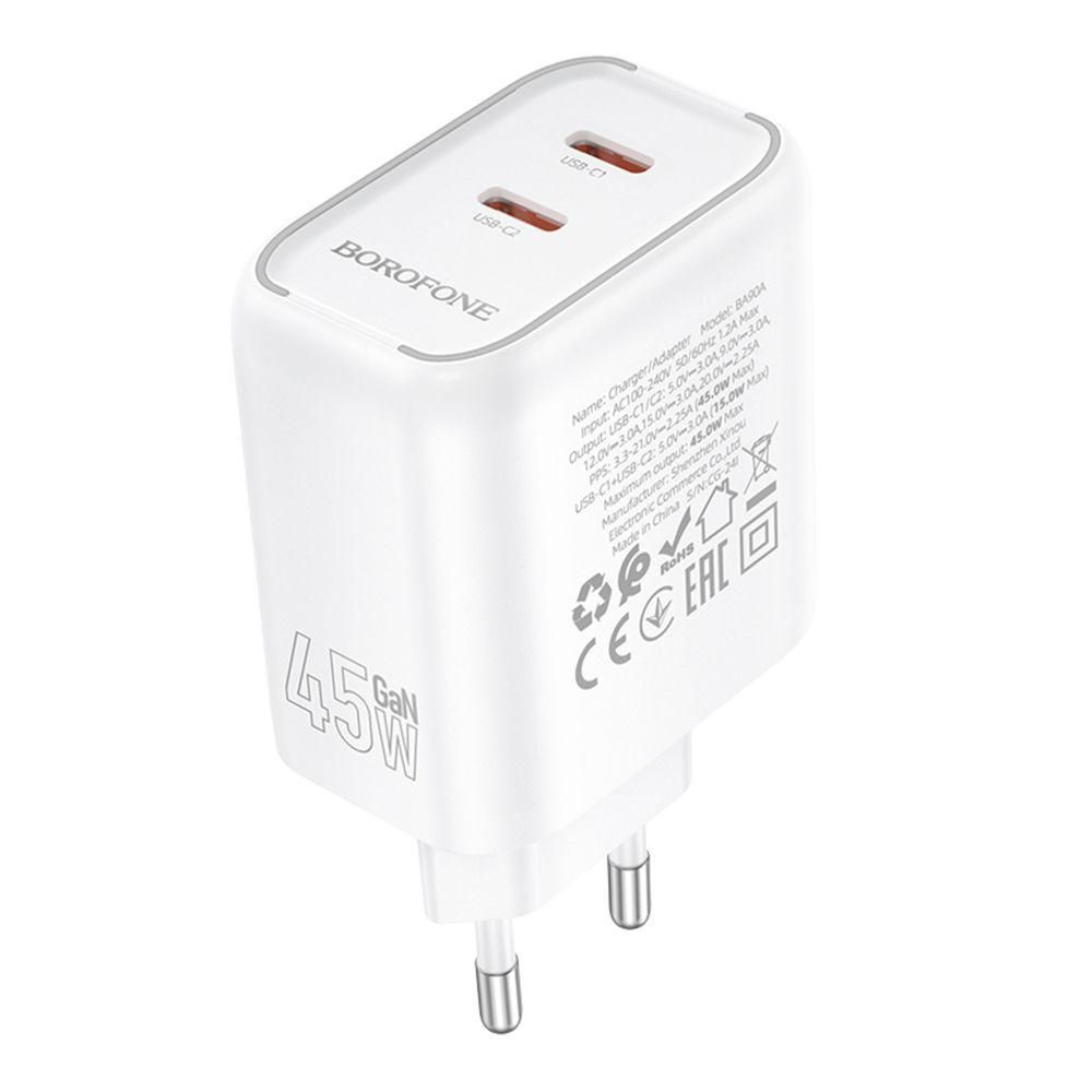 Мережевий зарядний пристрій Borofone BA90A 2 USB-C PD/QC45W Колір Білий