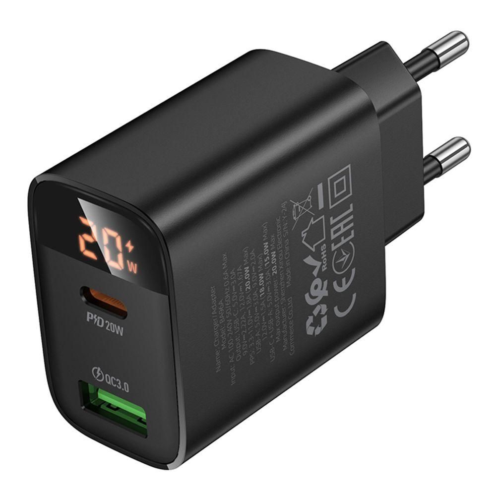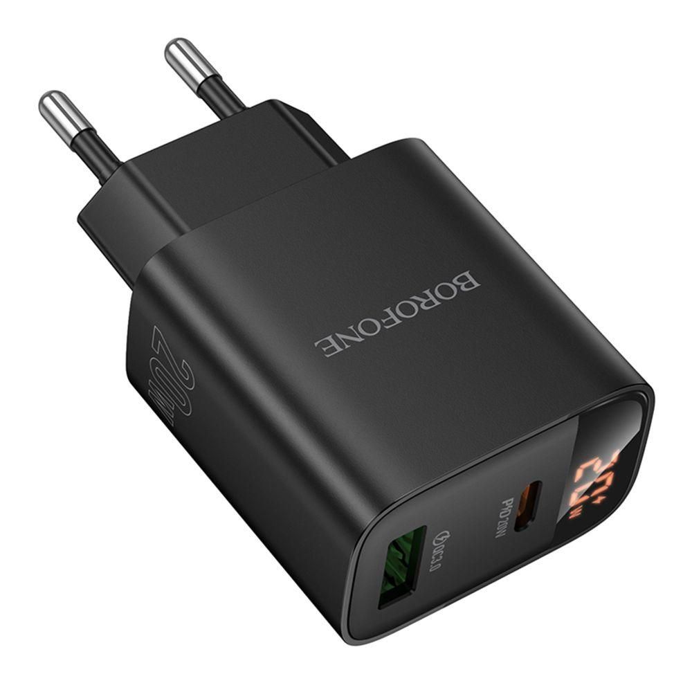 Мережевий зарядний пристрій Borofone BA96A 1 USB-C/1USB PD/QC 20W Led Display Колір Чорний