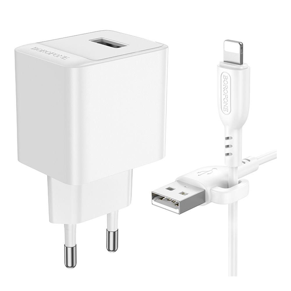 Мережевий зарядний пристрій Borofone BAS11A 1USB 2.1 A+USB to Lightning Колір Білий