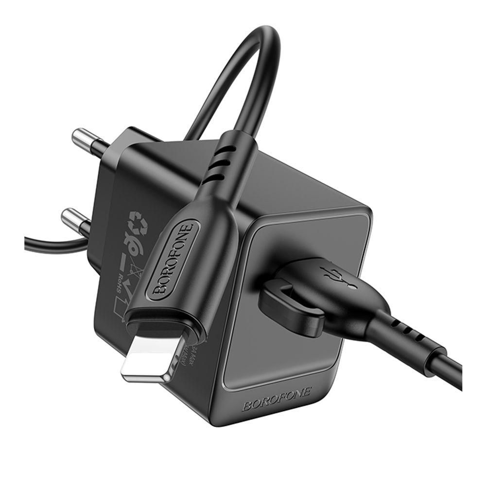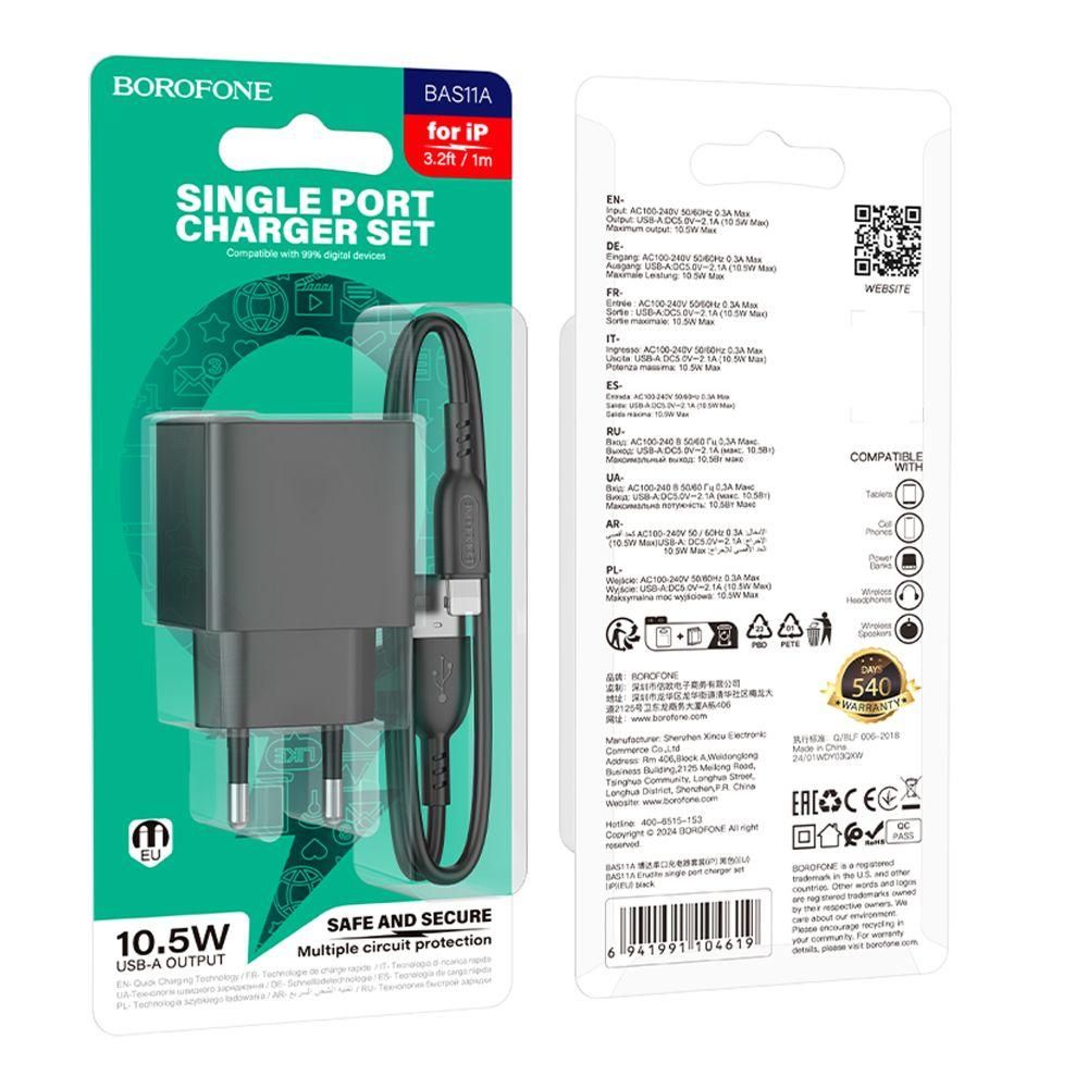 Мережевий зарядний пристрій Borofone BAS11A 1USB 2.1 A+USB to Lightning Колір Чорний