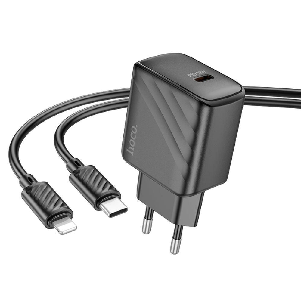 Мережевий зарядний пристрій Hoco CS22A 1USB-C PD/QC 30 W + Type-C to Lightning Колір Чорний