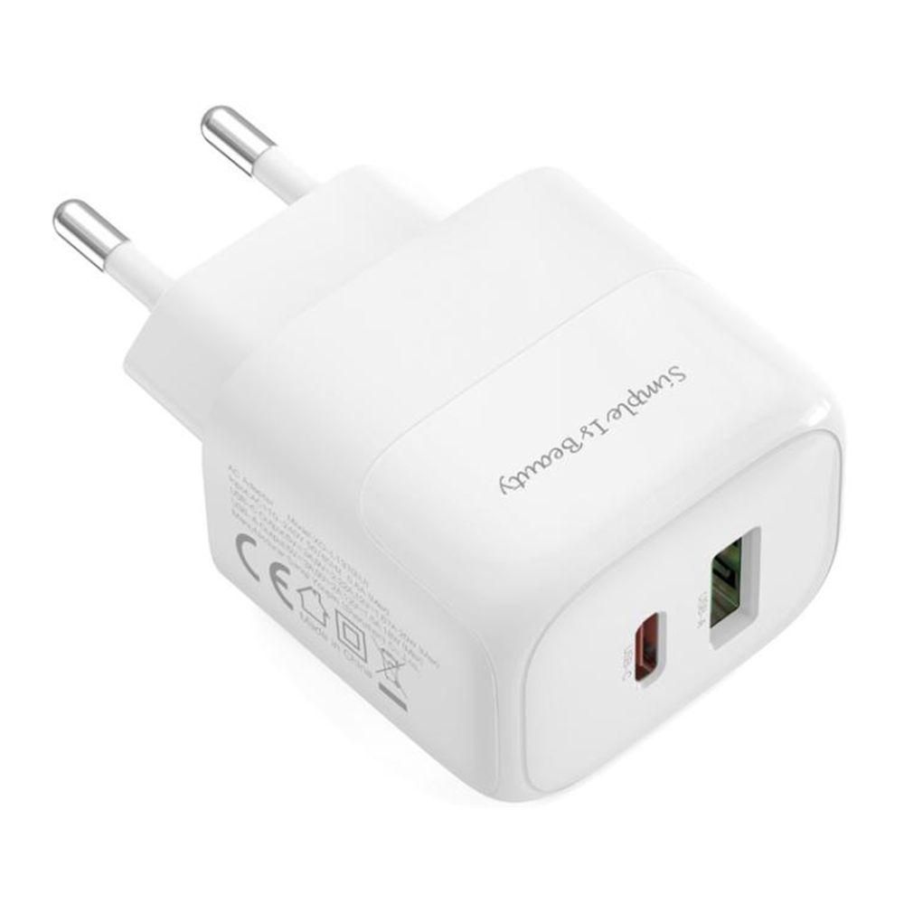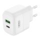 Мережевий зарядний пристрій XO L137 1USB-C/1USB PD/QC 20W+Type-C to Type-C New Logo Колір Білий
