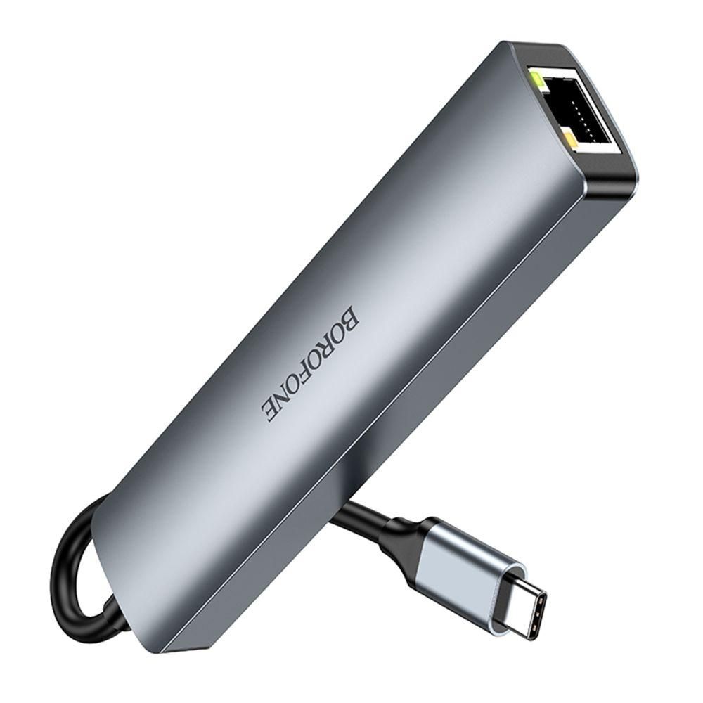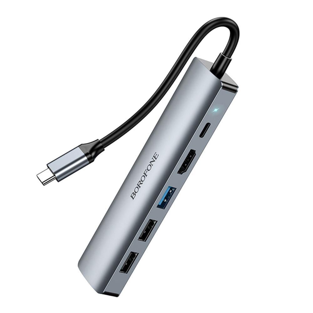 USB Hub Borofone DH16 6-в-1 Type-C to HDMI+PD+USB3.0+USB2.0*2+RJ45(L=0.15M) Цвет Серый