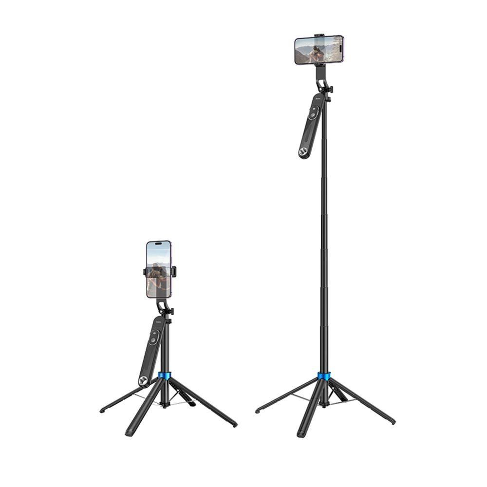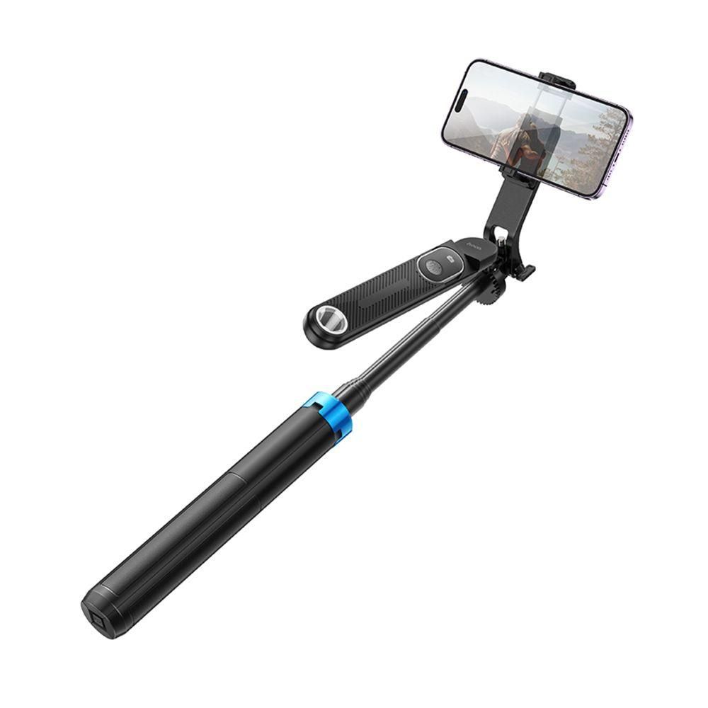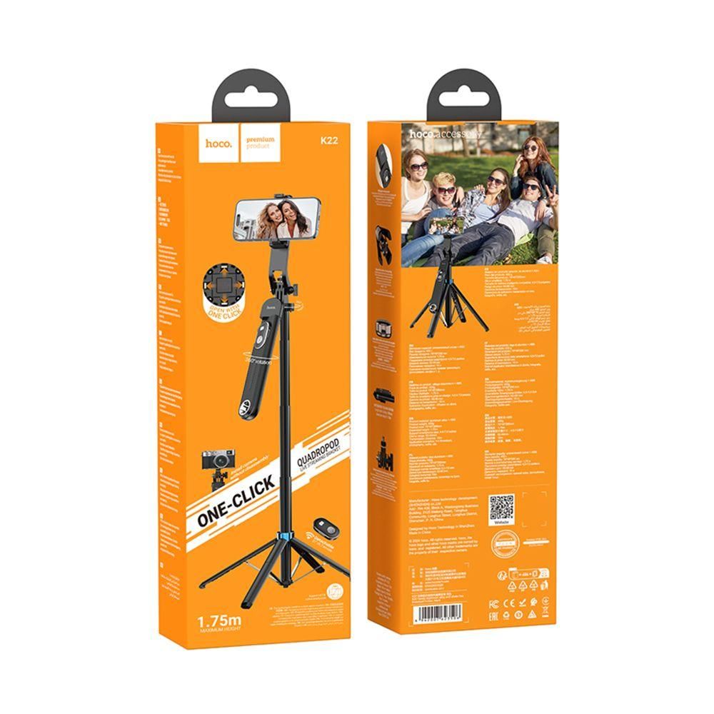 Селфі-штатив Hoco K22 — це універсальний і функціональний пристрій, який стане незамінним помічником для створення якісного контенту. Він ідеально підійде для блогерів і звичайних користувачів, які хочуть підвищити якість і зручність знімання фото та відео на смартфон або професійну камеру. Особливості та переваги селфі-штатива Hoco K22: • Оригінальний дизайн зі стильними глянсовими, кольоровими та текстурованими деталями. • Досить невелика вага (450 г) і компактні розміри в складеному стані (78×48×290 мм). • Надійна конструкція з алюмінієвого сплаву та стійкого до підвищених навантажень ABS пластику. • Ергономічна ручка з кнопкою в торці для трансформування в стійку чотириногу. • Телескопічний штатив із декількох секцій із максимальною довжиною 175 см. • Додаткова ручка з поворотним механізмом для зручного знімання селфі та влогів на ходу. • Знімний пульт ДК з акумулятором ємністю 55mAh і модулем Bluetooth V5.2 для віддаленої активації знімання на смартфоні. • Тримач для смартфона з універсальним розсувним механізмом. • Широкий діапазон ширини захоплення: 62-90 мм, — сумісність зі смартфонами з діагоналлю екрана 4.5-7 дюймів. • Шарнірне з'єднання тримача для виконання горизонтального або вертикального знімання. • Стандартне гвинтове кріплення 1/4" для встановлення фотокамер, кільцевих ламп та інших сумісних пристроїв. Оригінальна, практична конструкція та розширений функціонал роблять селфі-штатив Hoco K22 ідеальним вибором для використання в будь-яких умовах: у приміщенні, на вулиці, під час прогулянок або подорожей.