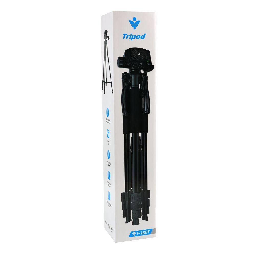 Штатив F-180T — це універсальний, функціональний трипод, який зробить процес знімання максимально комфортним і дасть змогу реалізувати найкреативніші ідеї. Він допоможе легко та просто зафіксувати камеру, смартфон або інше сумісне обладнання в найзручнішому положенні з можливістю гнучкого настроювання висоти та кута нахилу. Особливості та переваги штатива F-180T: • Невелика вага (1.35 кг) і компактні розміри в повністю складеному стані (всього 53 см). • Зносостійкі шарніри та деталі з ABS пластику, який виділяється підвищеною стійкістю до навантажень. • Три ноги з квадратним профілем і центральна стійка з легкого, але надзвичайно міцного алюмінієвого сплаву. • Телескопічна будова ніг із фіксаторами для кожної зі секцій, м'якими накладками та прогумованими наконечниками. • Підіймальний механізм центральної стійки зі зручною ручкою для плавного настроювання висоти. • Висота з повністю розкладеною секціями ніг і піднятою центральною стійкою: 178 см. • Практична ручка для зручного перенесення та гак для фіксації додаткового вантажу. • Функціональна 3D-голова з ергономічною ручкою, вбудованим бульбашковим рівнем і майданчиком із гвинтовим кріпленням 1/4|. • Система з шарнірів і фіксаторів голови для настроювання кута нахилу, повороту та зміни панорами. • Комплектується сумкою-чохлом, універсальним тримачем для смартфона та пультом для віддаленого керування камерою смартфона через Bluetooth. Штатив F-180T 1.8 м Remote стане чудовим вибором для фотографів і відеографів, яким потрібна надійна та функціональна опора для своєї техніки. Надійність, практична конструкція та доступна ціна роблять його привабливим придбанням як для початківців, так і для досвідчених користувачів.