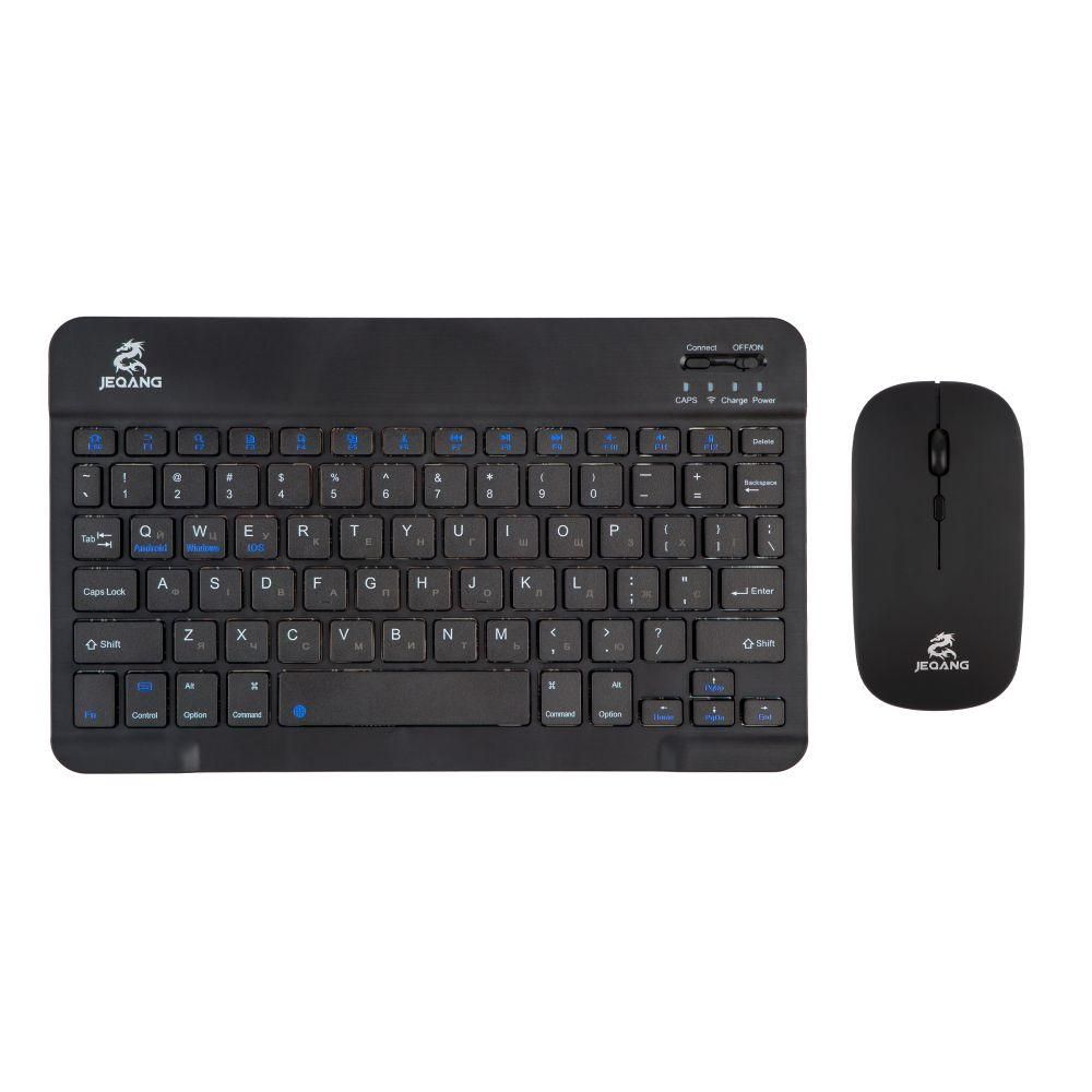 Бездротова клавіатура та миша JEQANG JB-350 — це комплект стильної та функціональної комп'ютерної периферії, який стане чудовим вибором як для роботи, так і для розваг. Миша та клавіатура виготовлені в одному стилі й одному забарвленні, представлені в широкій колірній різноманітності. Кожен з пристроїв виділяється винятковою надійністю й універсальністю, яка забезпечується підтримкою бездротового під'єднання через Bluetooth. Переваги та основні характеристики бездротової клавіатури: • Компактний форм-фактор (78 клавіш) — не займе багато місця на робочому столі. • Надійно зібраний корпус із міцних матеріалів. • Якісні кейкапи з чітко нанесеними символами. • Практичні, зносостійкі перемикачі типу «ножиці» з тихим, коротким ходом. • Модуль Bluetooth V5.0 для бездротового під'єднання до трьох пристроїв. • Функціональні кнопки для керування мультимедіа та швидкого перемикання між під'єднаними пристроями. • LED-індикатори, кнопки вмикання й настроювання сполучення. • Ємний вбудований акумулятор — безперервна робота впродовж декількох днів. • Сучасний роз'єм Type-C для заряджання за допомогою комплектного USB-кабелю. Ключові особливості бездротової миші: • Компактні розміри та невелика вага. • Ергономічна симетрична форма. • Корпус із міцного, приємного на дотик ABS пластику. • Дві стандартні кнопки, колесо прокручування та кнопка для зміни DPI «на льоту». • Модуль Bluetooth — стабільне бездротове з'єднання. • Чутливий оптичний сенсор — забезпечує точне позиціювання курсора та швидке відстеження пересувань на будь-якій поверхні. Бездротова клавіатура та миша JEQANG JB-350 створені з використанням високоякісних матеріалів і сучасних технологій для максимально комфортної й ефективної експлуатації в поєднанні з настільним ПК, планшетом, смартфоном або смарт-телевістю.