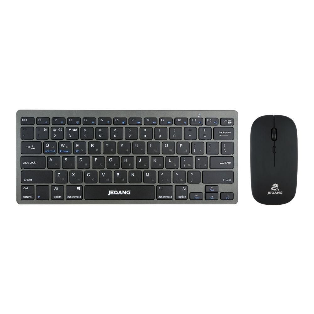 Бездротова клавіатура та миша JEQANG JB-326 створені для сучасних користувачів, які цінують свободу від дротів і можливість миттєвого перемикання між кількома пристроями. Ергономічний дизайн і бездротове з'єднання роблять цей набір ідеальним вибором для оптимізації робочого простору та підвищення продуктивності. Особливості та переваги клавіатури: • Компактні розміри з невеликою товщиною й оптимальним набором необхідних клавіш у кількості 78 штук. • Якісні електронні компоненти та надійне складання корпусних деталей з ударостійкого пластику. • Практична форма з округленими кутами та розширенням біля верхньої грані для зручного розташування на столі під кутом. • Ножичні перемикачі з надзвичайно тихим ходом, чудовим відгуком і збільшеним ресурсом натискань. • 2 типи бездротового з'єднання: через Bluetooth і на частоті 2.4GHz за допомогою комплектного USB-адаптера. • Функціональні клавіші для швидкого керування мультимедіа та перемикання між трьома пристроями. • Тривалий час роботи від двох змінних батарейок стандарту AAA. • Слот для зберігання USB адаптера під кришкою батарейного відсіку. Основні особливості миші: • Невелика вага та компактні розміри з невеликою товщиною (всього 25 мм). • Ергономічна симетрична форма для зручного захоплення як лівою, так і правою рукою. • Якісно зібраний корпус із міцного ABS-пластику та накладки на нижній панелі зі зносостійкого полімерного матеріалу. • 2 стандартні кнопки, функціональне колесо прокручування з прогумованою шиною та кнопка для швидкої зміни DPI. • Чутливий оптичний сенсор, який точно та швидко відстежує переміщення практично на будь-якій поверхні. • 2 типи бездротового з'єднання: через Bluetooth і на частоті 2.4GHz за допомогою комплектного USB-адаптера (повідомлень із клавіатурою). • Тривалий час роботи від двох змінних батарейок стандарту AAA. Клавіатура та миша JEQANG JB-326 забезпечують комфортне керування й тривалу автономну роботу, що особливо важливо у разі активного використання техніки поза стаціонарного робочого місця.