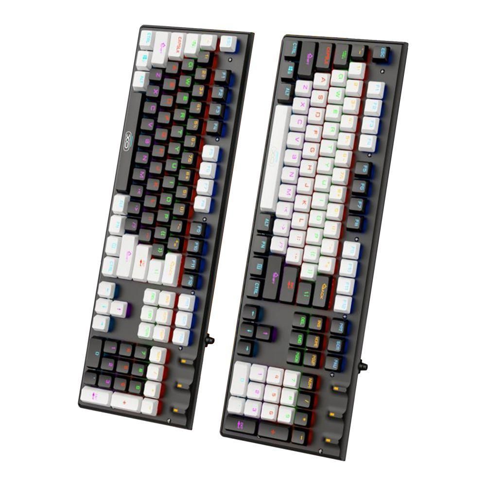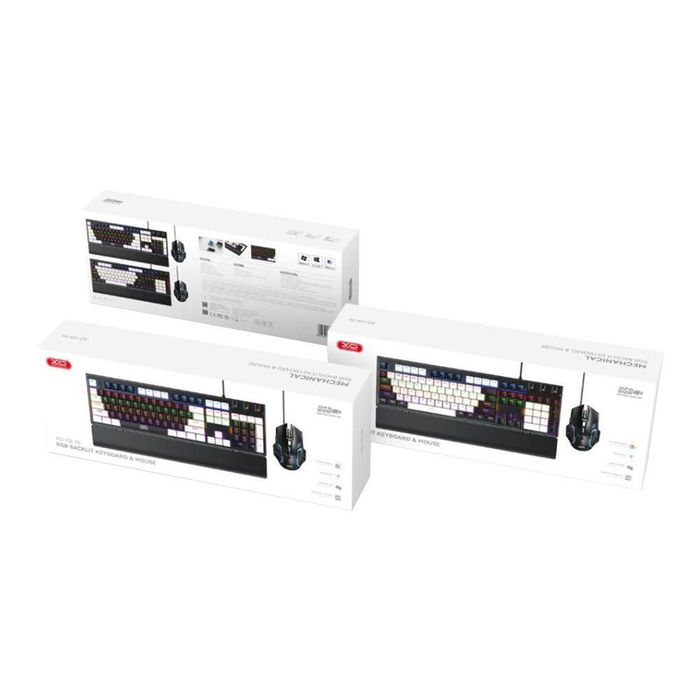 Клавіатура та миша XO KB-06 — це ефектний комплект із різнобарвною підсвіткою й надійними механічними перемикачами, який ідеально підійде як для роботи, так і для геймінгу. Ергономічний дизайн, чіткий відгук клавіш і стильне оформлення роблять цей набір ідеальним рішенням для тих, хто цінує комфорт, функціональність і візуальну естетику робочого місця. Особливості та переваги механічної клавіатури: • Стандартний форм-фактор зі 104 клавішами та вдосконаленою конструкцією для максимально комфортної експлуатації. • Стильна, оригінально реалізована LED-підсвітка з різними кольорами для певних груп клавіш. • Надійні електронні компоненти та якісне складання корпусних деталей з ударостійкого пластику. • Широка панель — підставка для зап'ястків, яка забезпечує максимальний комфорт під час тривалої роботи. • Практичні, знімні кейкапи, виготовлені методом лиття під тиском із міцного пластику двох різновидів. • Злегка вигнута форма кейкапів і якісні символи, які в поєднанні з підсвіткою чітко помітні в темряві. • Сучасні механічні перемикачі з чудовим, приємним окликом і збільшеним ресурсом натискань. • Стандартні LED-індикатори для контролю роботи деяких функцій і вбудований кабель із роз'ємом USB-A. • Підтримка технології Plug and Play та сумісність із більшістю ОС. Ключові особливості миші: • Оригінальний дизайн з об'ємними деталями та стильними вирізами, які лаконічно поєднуються з барвистою LED-підсвіткою. • Ергономічна симетрична форма, яка забезпечує зручне захоплення будь-яким звичним способом і будь-якою рукою. • Якісні електронні компоненти та надійно зібраний корпус із міцного ABS-пластику з приємною на дотик поверхнею. • 2 стандартні кнопки та 2 додаткові (на лівій грані), кнопка для зміни DPI та функціональне колесо прокручування. • Стійкі до зношування перемикачі основних кнопок із чудовим відгуком і ресурсом натискань приблизно 3 мільйони разів. • Сучасний оптичний сенсор, який точно та швидко відстежує переміщення з чутливістю 1200, 1800, 2400 і 3200DPI. • Вбудований кабель із роз'ємом USB-A, підтримка технології Plug and Play і сумісність із більшістю сучасних ОС. Завдяки продуманій конструкції, яскравій підсвітці та чіткому віддалі клавіш і кнопок, XO KB-06 стане надійним помічником у повсякденній роботі та надійним супутником у віртуальних битвах.