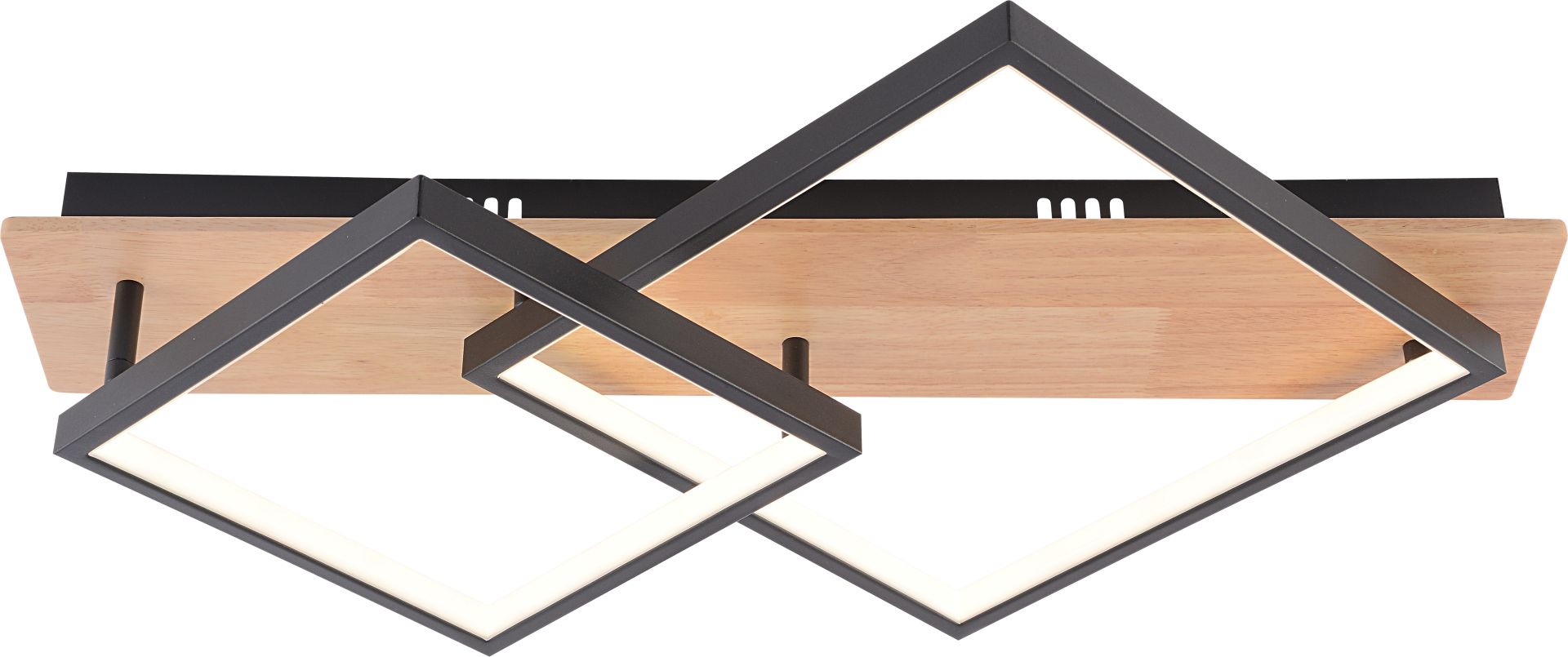 Модель виконана у стильному поєднанні чорного металу та дерева. Світло розсіюється через якісний акрил, забезпечуючи м'яке та комфортне освітлення. Завдяки вбудованому LED-модулю потужністю 47W вона забезпечує світловий потік 1410Lm, що є достатнім для ефективного освітлення приміщення, будучи при цьому енергоефективною.