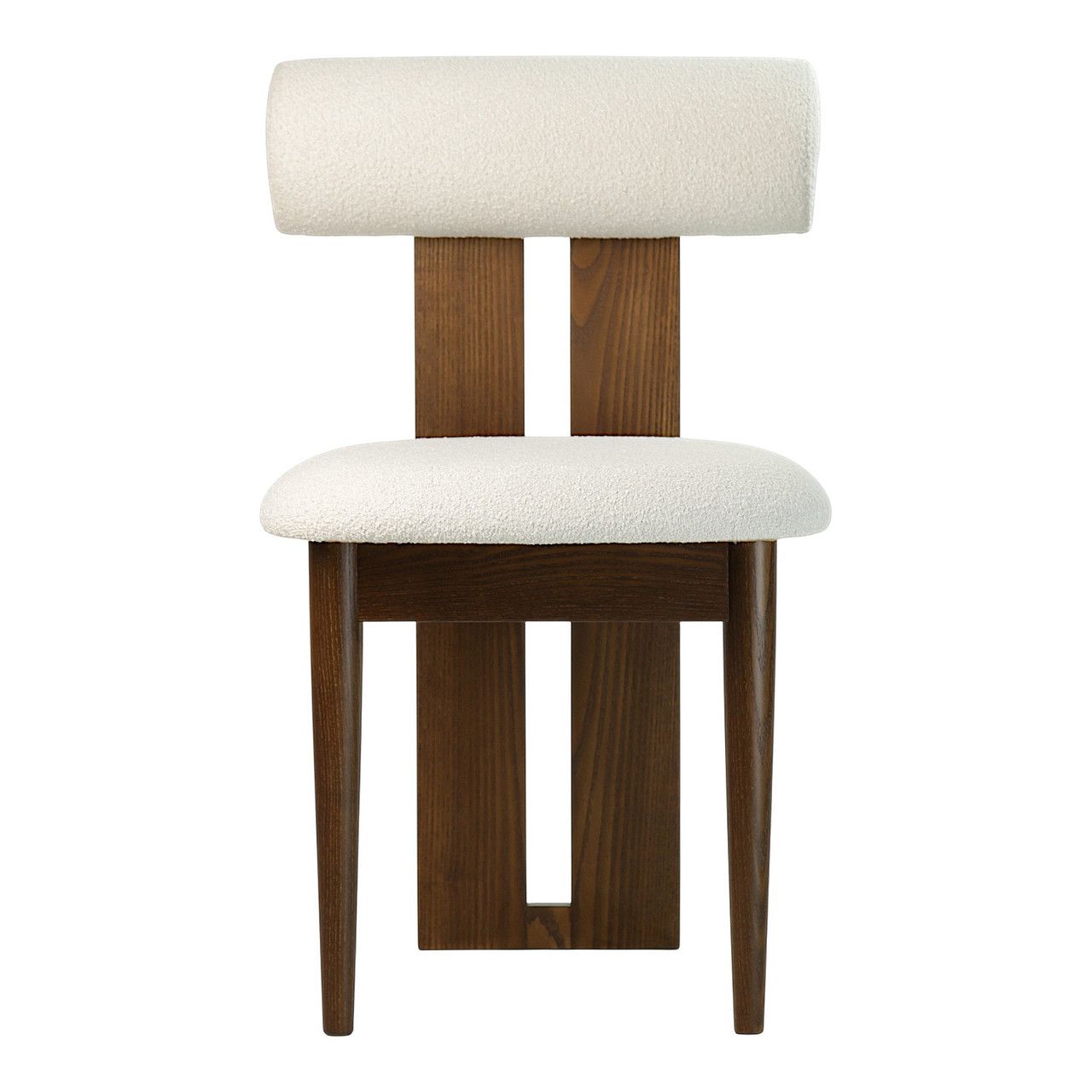 Стілець Eir поєднує скульптурну форму з природною текстурою деревини, створюючи гармонійний акцент у сучасному інтер’єрі. Характерна спинка циліндричної форми забезпечує зручну підтримку та додає образу унікальності.