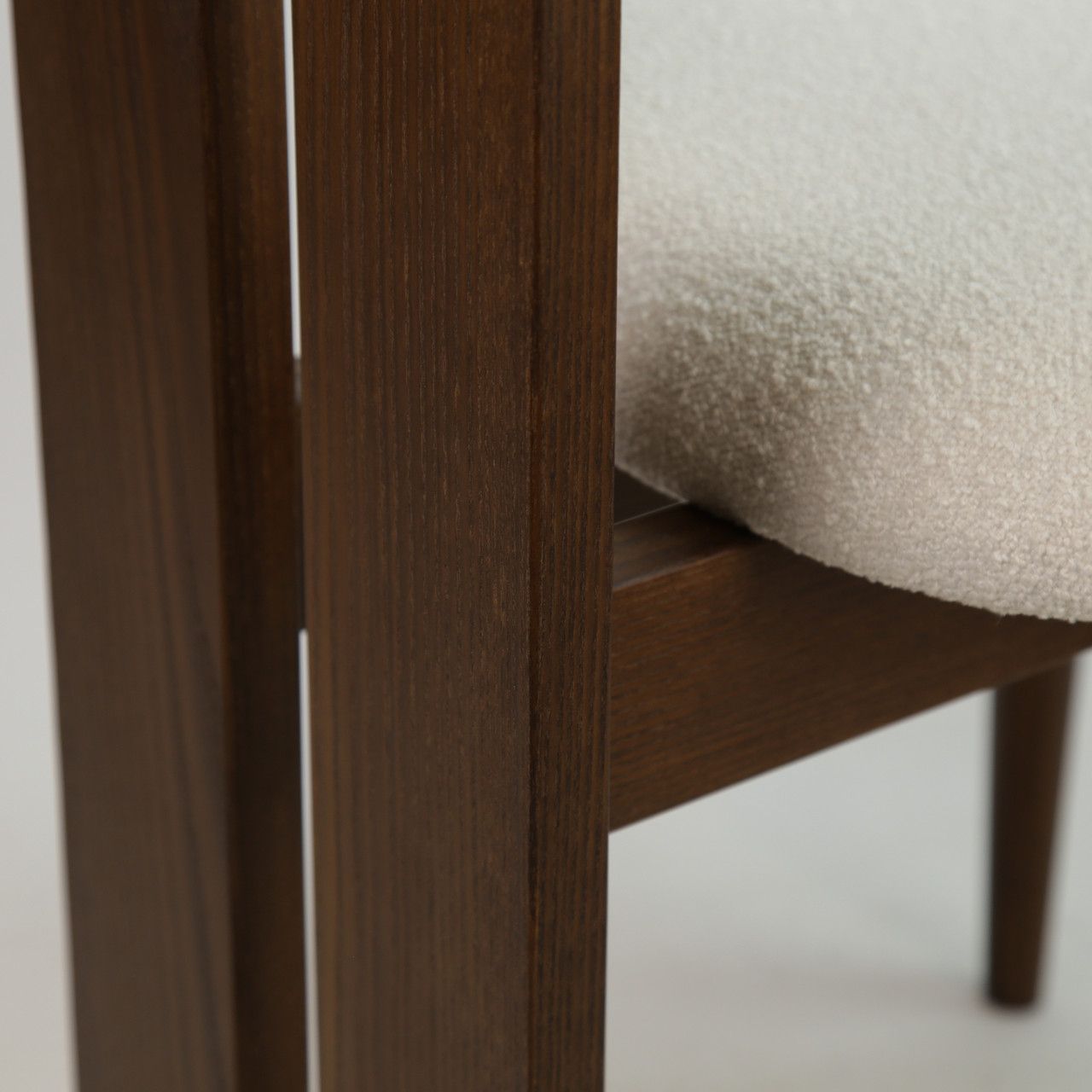 Каркас виготовлений із масиву дуба або ясеня — матеріалів, що відомі своєю міцністю та довговічністю. М’яке сидіння та спинка оббиті тканиною, яку можна замовити з широкої палітри доступних.