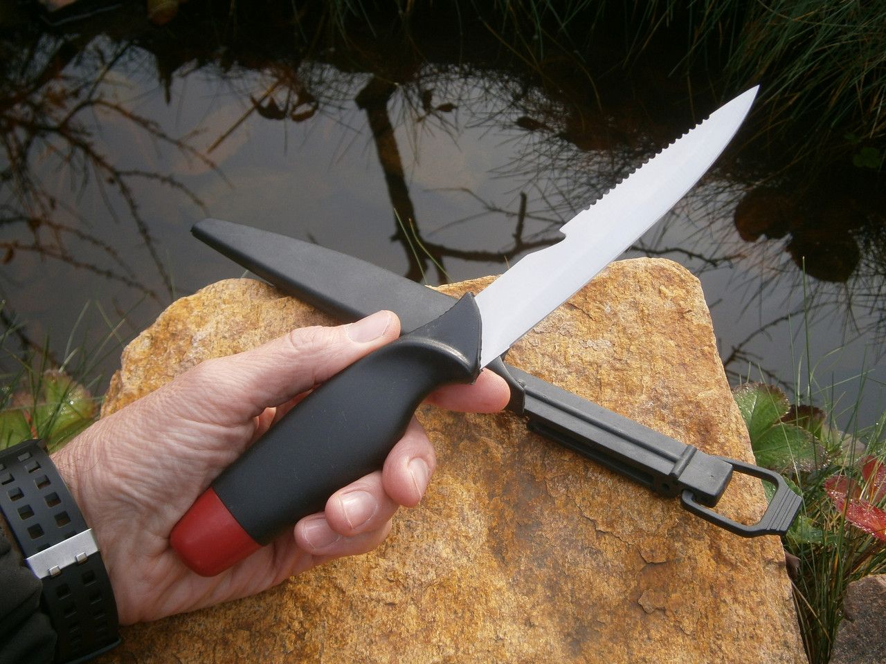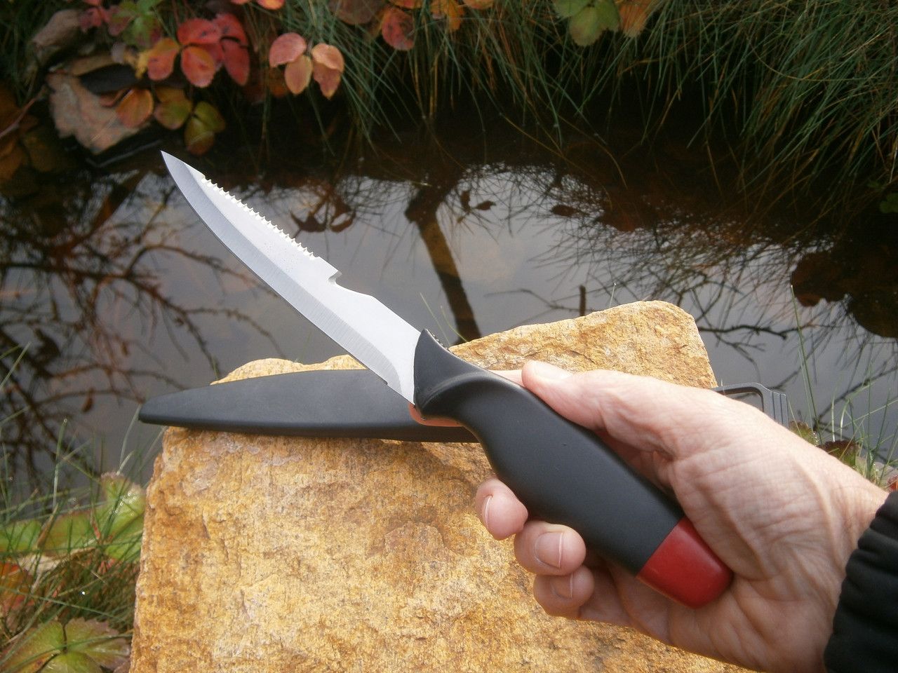 Унікальною особливістю ножа є його здатність не тонути в воді, завдяки пустотній ручці, яка також служить як контейнер для зберігання дрібних рибальських аксесуарів.
