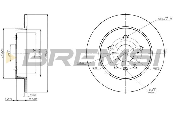 Диск гальмівний задній Suzuku SX4 06-(278x9), Bremsi (CD8075S)