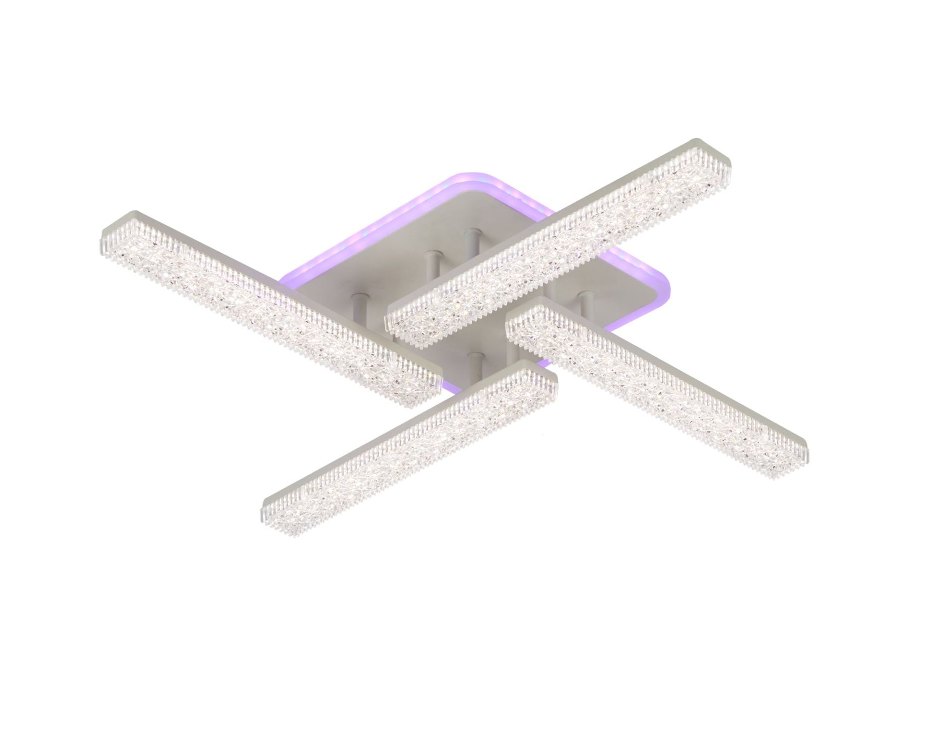 Ця люстра виготовлена з високоякісного акрилу та має чотири елегантних плафони прямокутні білого кольору. Її дизайн виразно демонструє сучасність та елегантність. І що найважливіше, вона призначена для кімнат, де кожен сантиметр має значення, розміри люстри - 570 мм довжина, 570 мм ширина і 90 мм висота