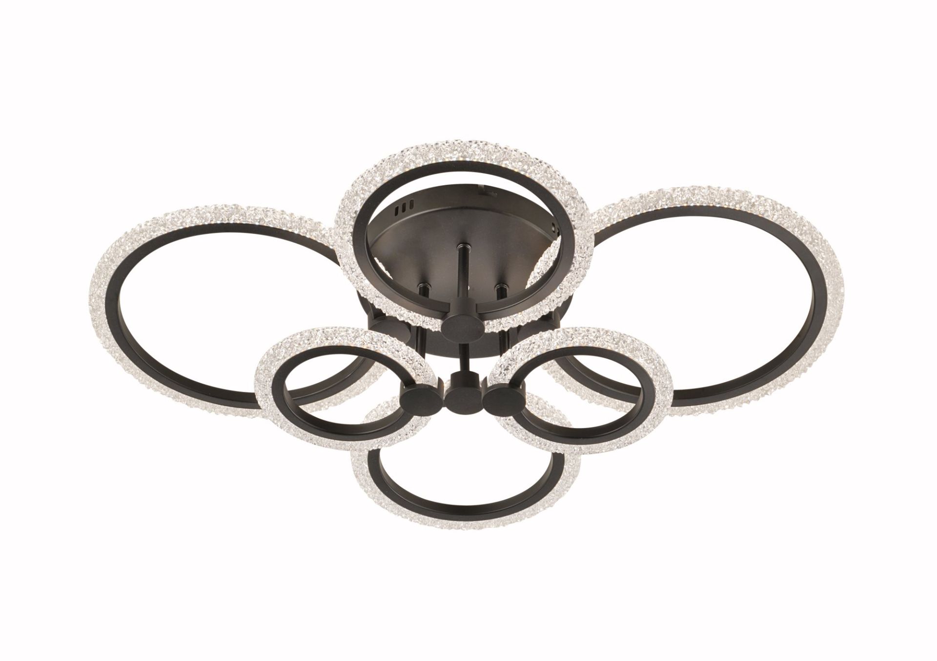 Світлодіодна люстра V 5115-2+2+2 BK — це сучасне поєднання елегантного дизайну, технологічності та високої функціональності. Модель виконана у чорному кольорі, а її композиція базується на шести круглих джерелах світла, розташованих на різних рівнях, що створює об’ємний та динамічний ефект у приміщенні. Джерелом світла виступає вбудована світлодіодна стрічка, яка забезпечує рівномірне, яскраве та комфортне освітлення без мерехтіння.