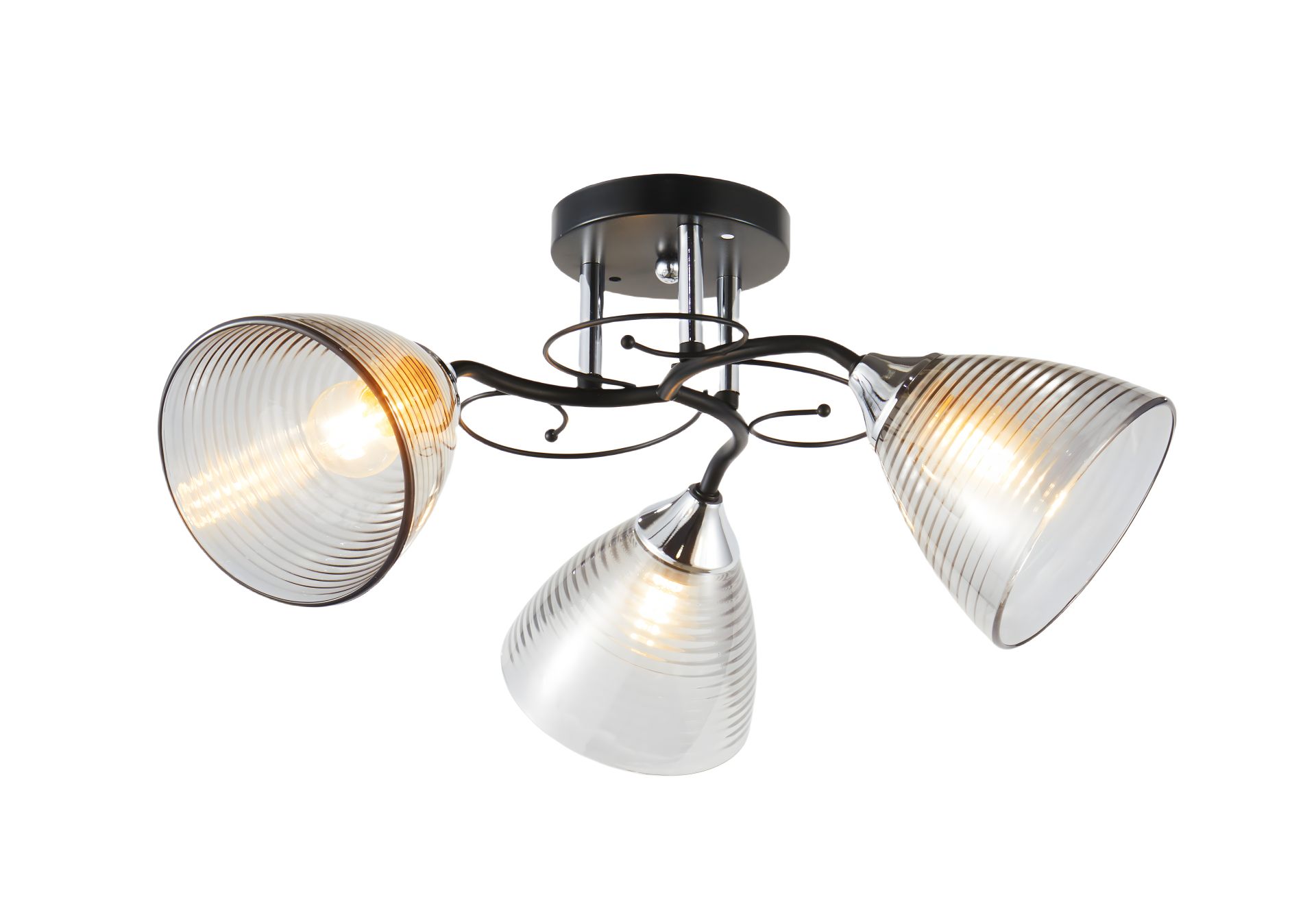Люстра V 6412-3 BK+CR — це стильне та сучасне рішення для інтер’єру, у якому гармонійно поєднані елегантність і стриманий характер. Модель має три скляних плафони з цоколем E27, виконані з прозорого скла в сірому тоні, що створює м’яке, приємне освітлення з легким відтінком теплоти.