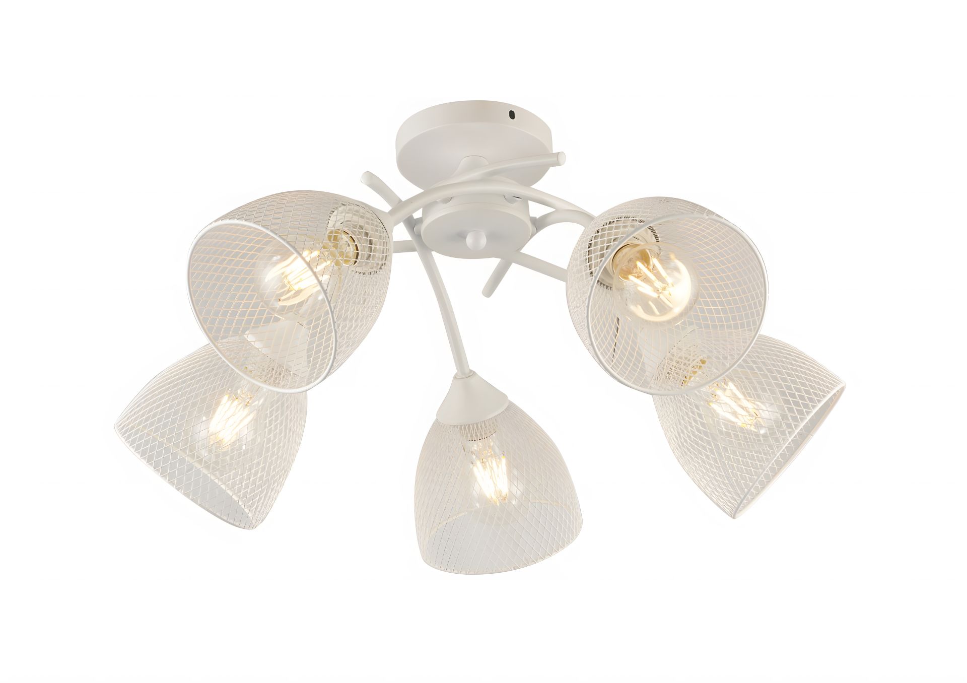 Декоративна люстра V W70404-5 WH — це сучасне рішення для стильного та затишного освітлення вашого простору. Модель оснащена пьятьма плафонами з цоколем E27, виконаними у вигляді металевих сітчастих абажурів білого кольору. Такий дизайн створює цікаву гру світла й тіні, додаючи приміщенню особливого характеру та атмосфери.