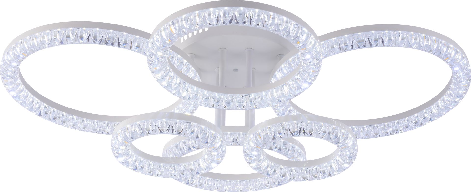 Джерелом освітлення є вмонтована світлодіодна стрічка, яка забезпечує потужне та рівномірне світло при мінімальному енергоспоживанні. Загальна потужність люстри — 86Вт, а світловий потік становить 8640 люменів, що дозволяє ефективно освітлювати навіть великі приміщення, створюючи комфортну та приємну атмосферу без мерехтіння.