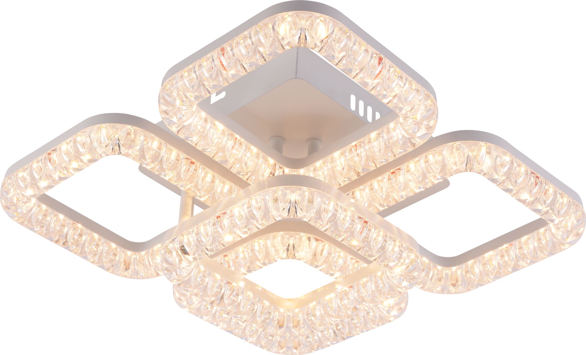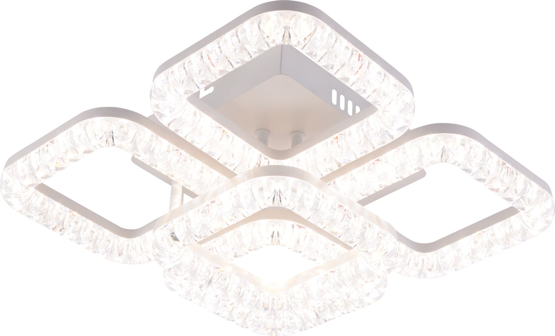 Модель оснащена п’ятьма світловими елементами з вбудованою світлодіодною стрічкою у формі квадратів, що створюють ефектну геометричну композицію. Загальна потужність 60 Вт і світловий потік 6000 лм гарантують яскраве та рівномірне освітлення, достатнє для приміщень площею до 20–25 м².