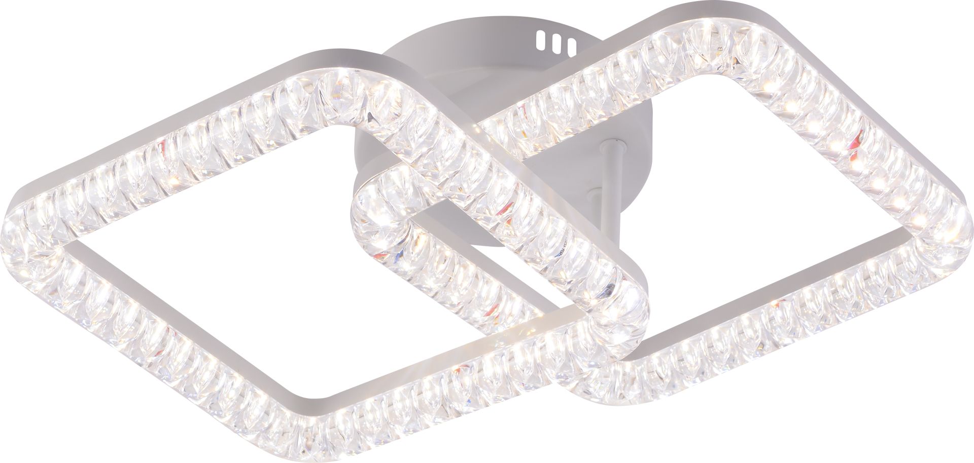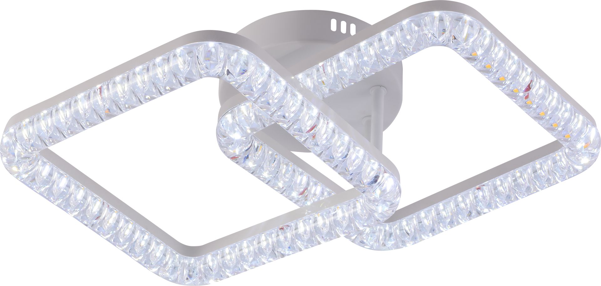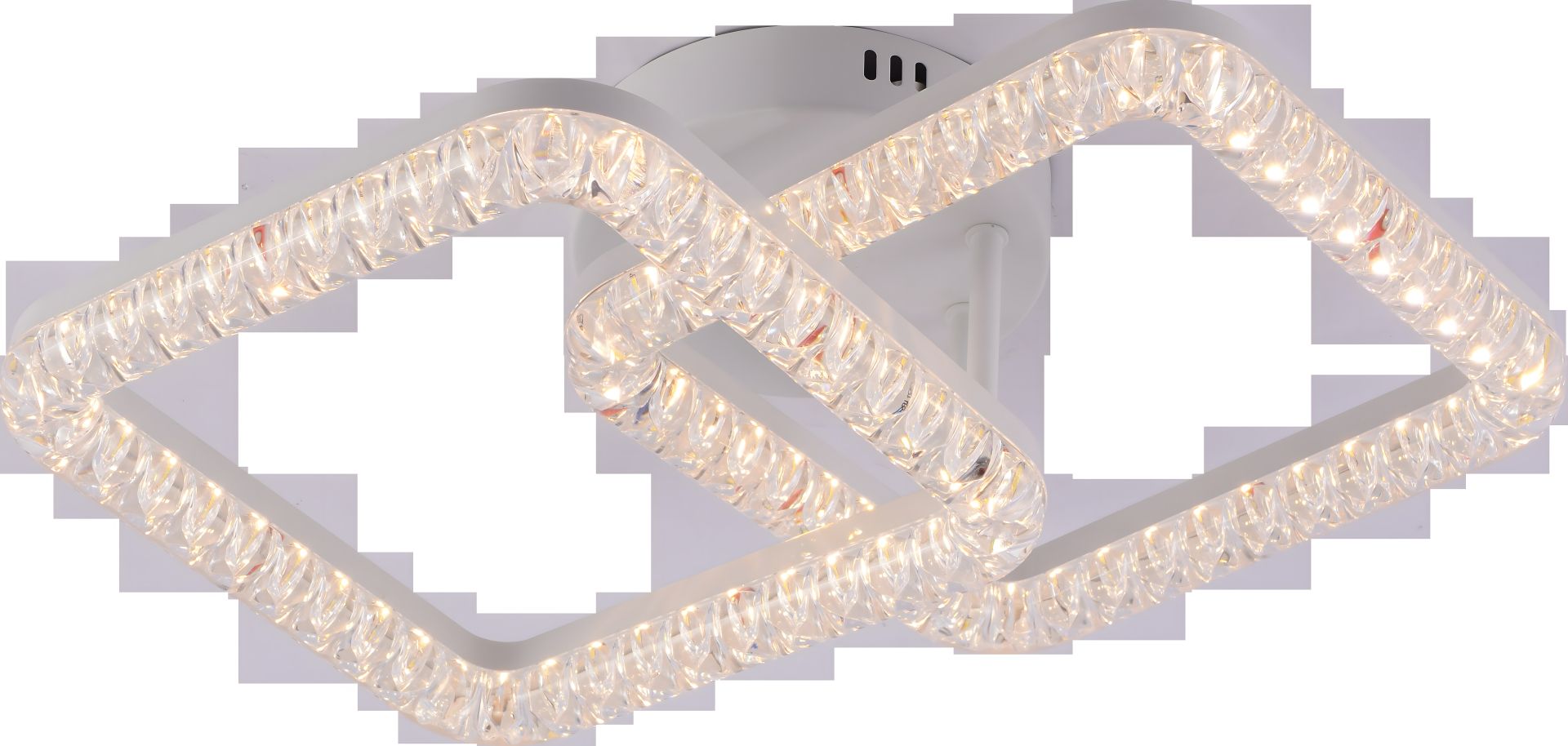 Модель оснащена двома світловими елементами у формі квадратів із вбудованою LED-стрічкою, що створює м’яке, рівномірне та приємне для очей освітлення. Потужність 34 Вт і світловий потік 3360 лм забезпечують достатню яскравість для комфортного освітлення приміщення середнього розміру — спальні, вітальні, кухні чи офісу.