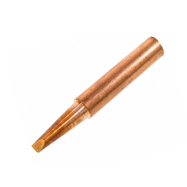 Це мідне паяльне жало з клиноподібним наконечником шириною 2,4 мм, призначене для широкого спектру робіт з монтажу та ремонту електроніки. Конус з двостороннім зрізом забезпечує зручну подачу припою та хорошу тепловіддачу як по площині, так і торцем.