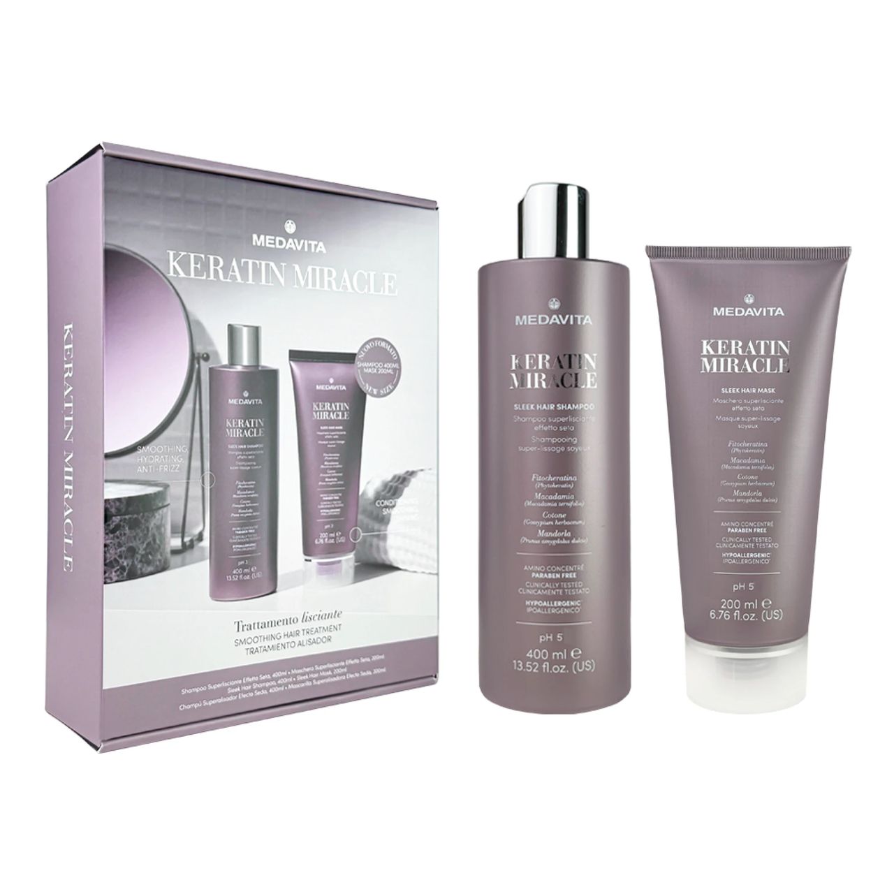 Подарунковий набір Medavita Keratin Miracle шампунь і маска для розгладження неслухняного та пухнастого волосся 400/200 мл