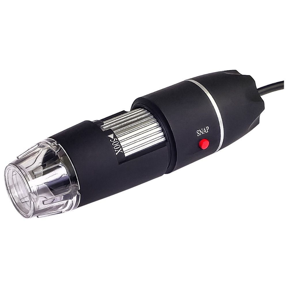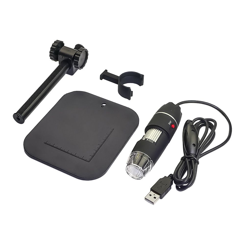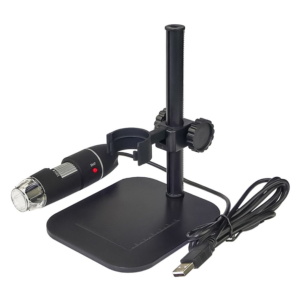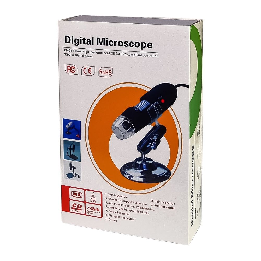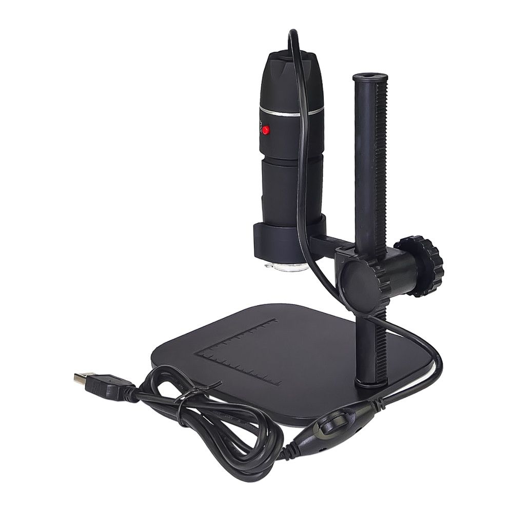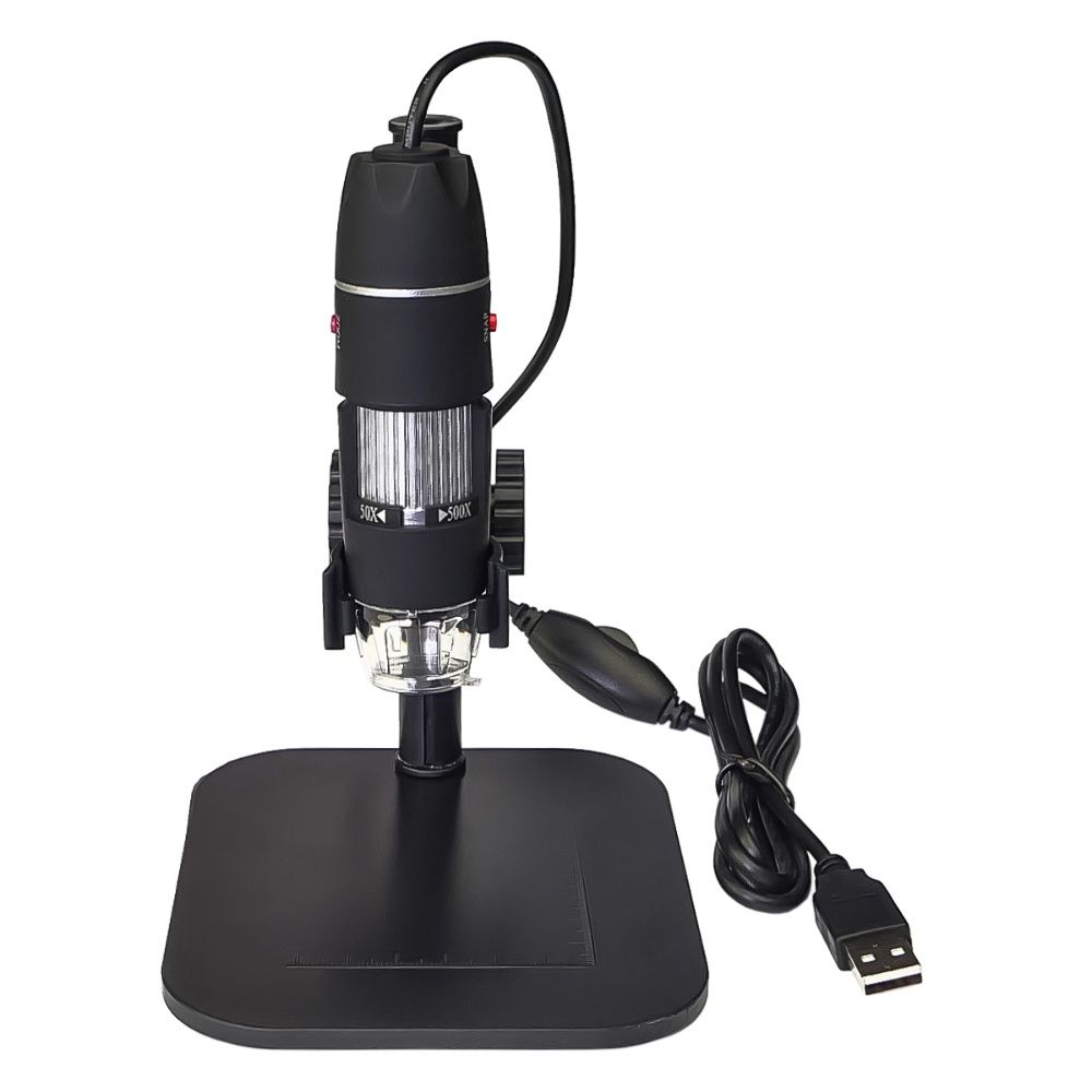 Це компактний USB-мікроскоп із підсвічуванням та регульованою стійкою, призначений для детального огляду плат, мікросхем, радіодеталей, елементів механіки, а також для навчальних та побутових завдань. Він забезпечує оптичне збільшення до 500х та виведення зображення на екран комп'ютера в реальному часі.